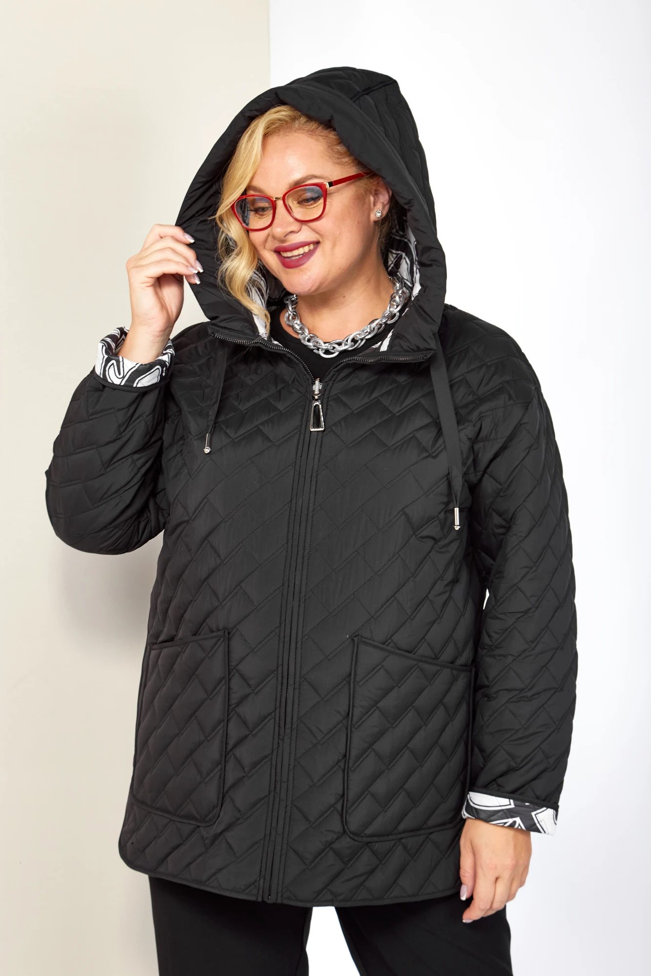 Длина рукава от горловины – 76 см (можно регулировать с помощью отворота). Длина изделия по спинке от шва втачивания капюшона – 77 см.