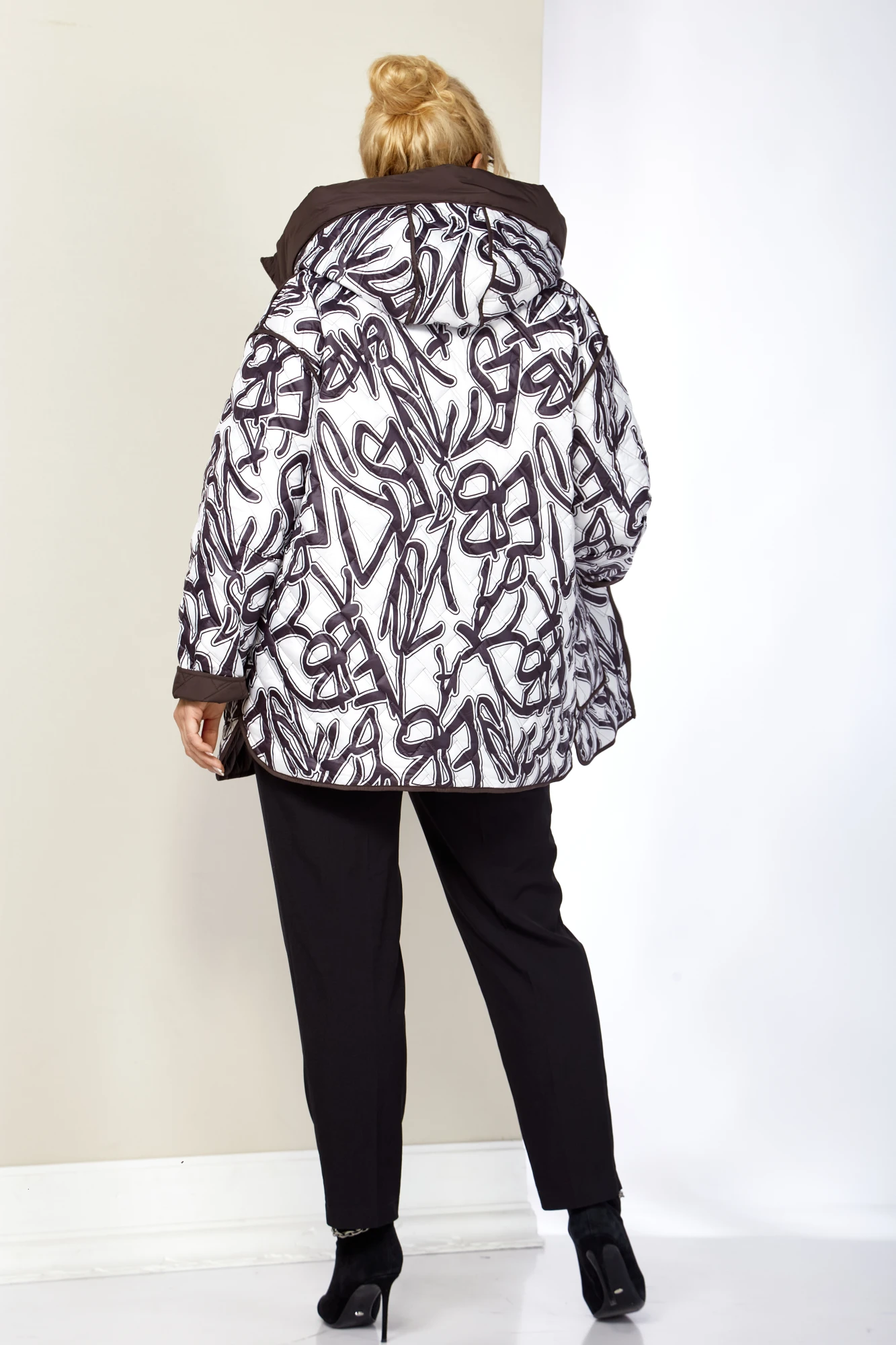 Длина рукава от горловины – 76 см (можно регулировать с помощью отворота). Длина изделия по спинке от шва втачивания капюшона – 77 см.