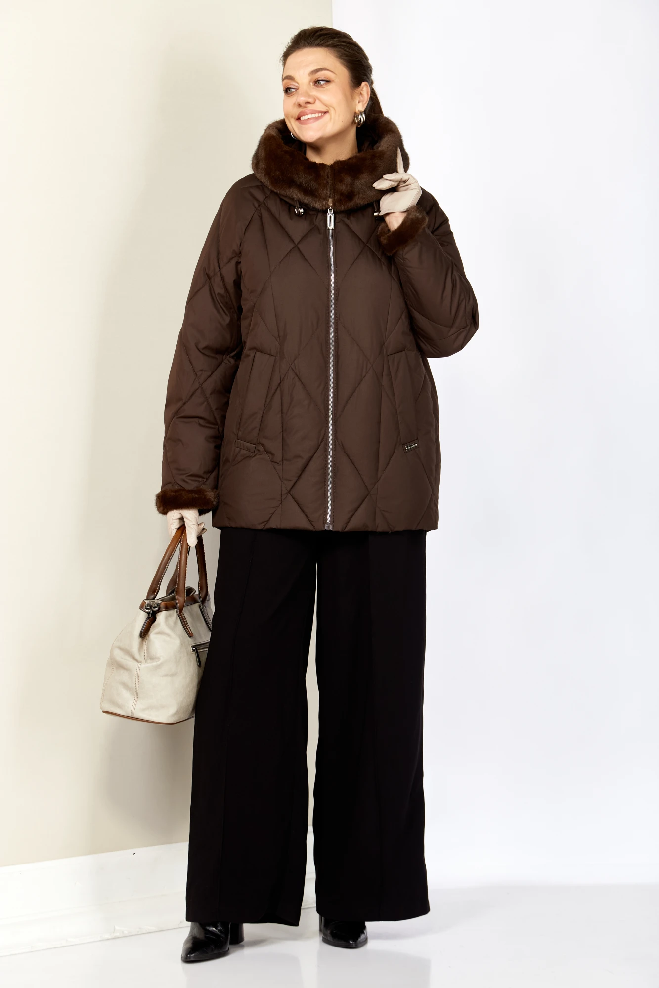 Материал сохраняет свои качества после стирки, быстро сохнет, имеет большую воздухопроницаемость. Благодаря дорогой и качественной фурнитуре, а также отделки из эко-меха норки, изделие смотрится дорого и элегантно.