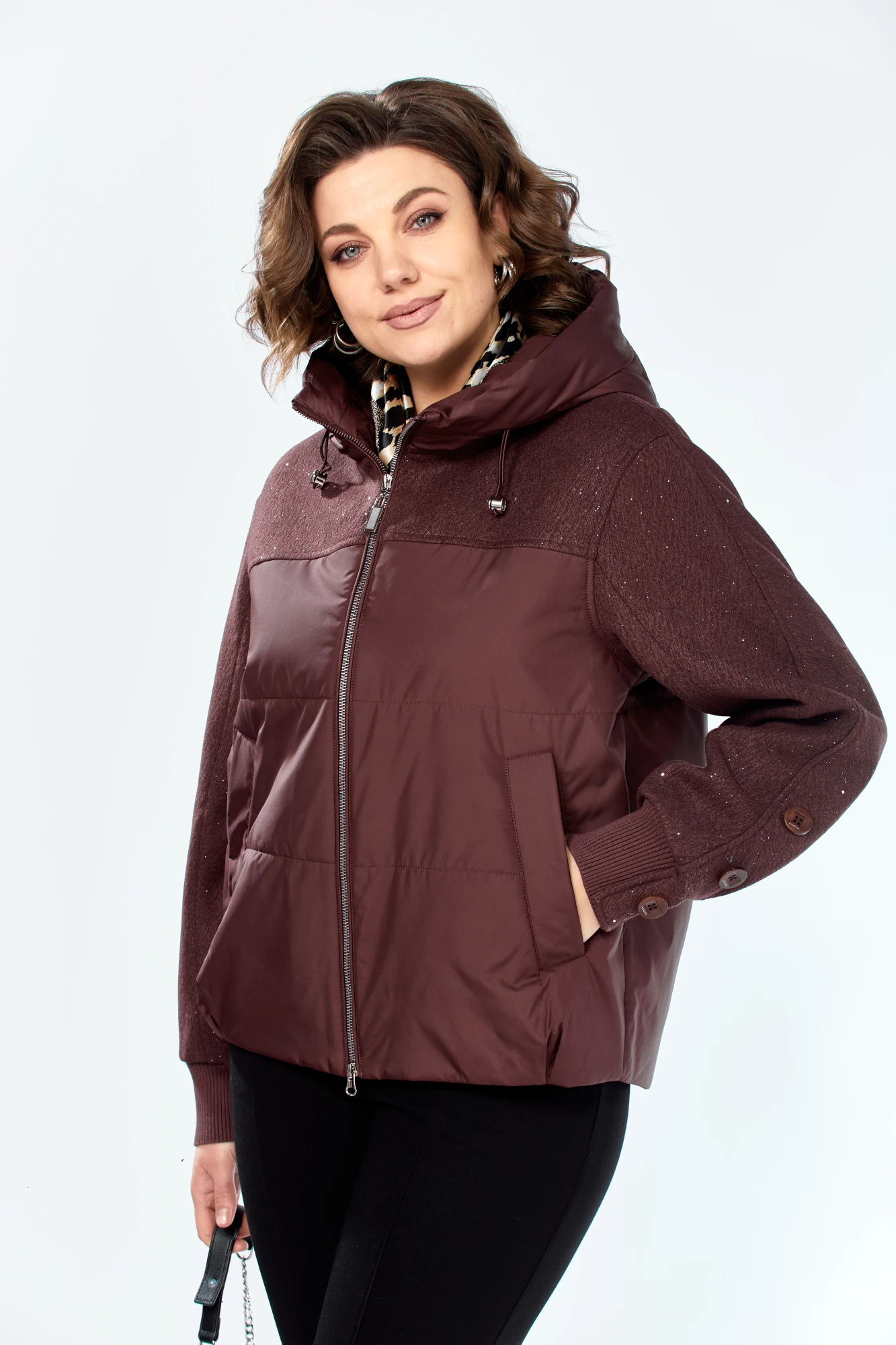 Женская демисезонная куртка прямого силуэта выполнена из практичных материалов и предназначена для комфортной носки в межсезонье. В качестве утеплителя используется синтетический полиэстер плотностью 100 г/кв. м, который обеспечивает оптимальный уровень тепла без утяжеления изделия. Куртка оснащена центральной застёжкой на двухбегунковую молнию, позволяющую расстёгивать изделие как сверху, так и снизу, что повышает удобство при движении и посадке. Несъёмный регулируемый капюшон с декоративной кулисой защитит от ветра и прохладной погоды. Функциональные прорезные карманы на магнитных кнопках надёжно фиксируют содержимое. Особенностью модели является втачная, из мягкой твидовой ткани, кокетка с эффектом лёгкого мерцания переходящая в рукав, что придает изделию оригинальность. Рукав с манжетой и декоративными пуговицами. Низ изделия фигурный, спинка длиннее переда на 11 см. С внутренней стороны куртки имеется внутренний карман предназначенный для хранения личных вещей и мелочей.