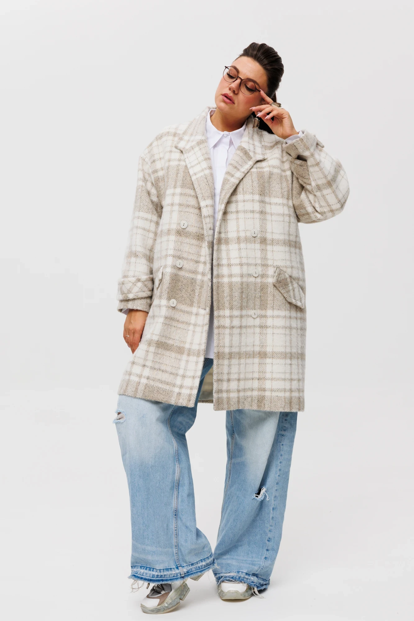 Модель оверсайз со спущенным плечом создана для тех, кто ценит свободу движений и непринужденную элегантность. Двубортный крой придает пальто особый шарм, а паты на рукавах со скосом — изысканную деталь, которая привлекает внимание. Карманы с клапанами добавляют функциональности, сохраняя при этом общий утончённый образ.