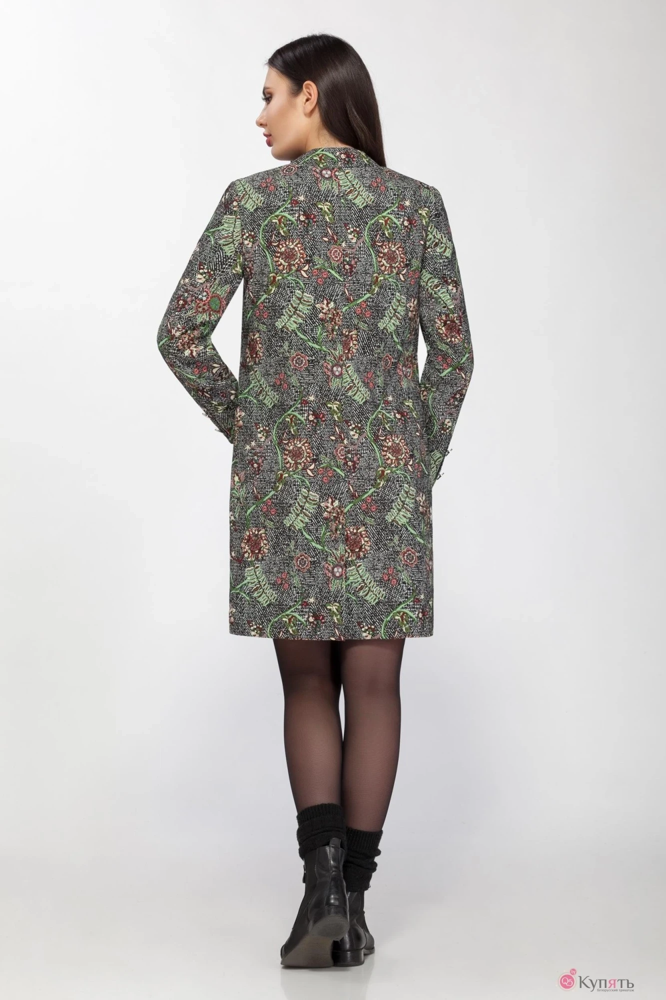 Пальто с двубортной застежкой, по горловине стойка. По переду рельефы из пройм, горизонтальный подрез по талии с карманами с клапанами в швах. По спинке средний шов со шлицей, пальто на подкладке.