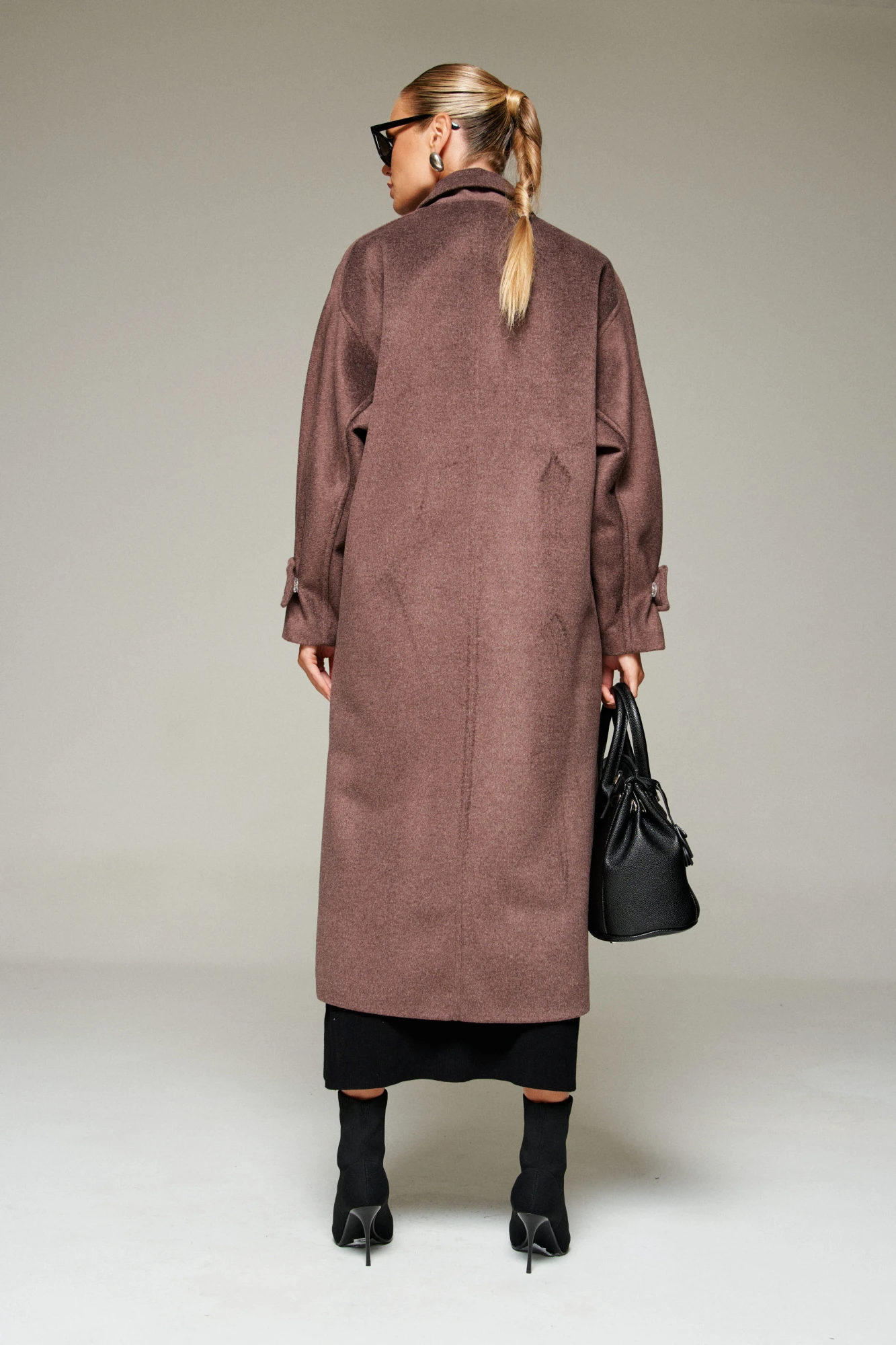 Пальто выполнено из шерстяной ткани, которая обеспечивает теплоизоляцию и защиту от ветра и влаги, подходит для межсезонья и теплой зимы. Двубортное, на подкладке. Изделие рассчитано на температурный режим от +10 до -5 градусов. Модель прямого силуэта актуального покроя «летучая мышь»; предназначена для повседневного использования.