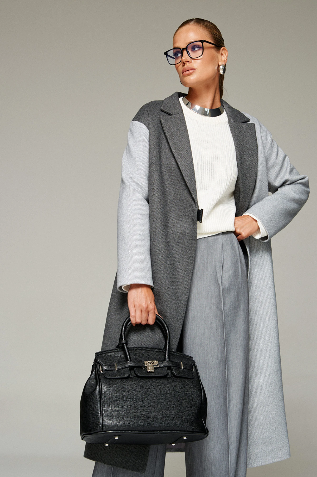 Пальто в актуальном сочетании меланжевых оттенков выполнено из шерстяной ткани, которая обеспечивает теплоизоляцию и защиту от ветра и влаги, подходит для межсезонья и теплой зимы. Двубортное, на подкладке. Изделие рассчитано на температурный режим от +10 до -5 градусов. Модель прямого силуэта с удлиненной линией плеча, предназначена для повседневного использования.