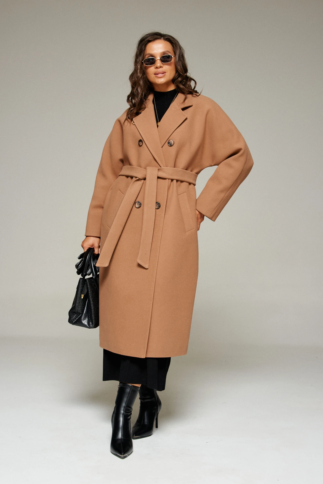 Пальто выполнено из шерстяной ткани, которая обеспечивает теплоизоляцию и защиту от ветра и влаги, подходит для межсезонья и теплой зимы. Двубортное, на подкладке. Изделие рассчитано на температурный режим от +10 до -5 градусов. Модель прямого силуэта, чуть расширенная к низу, покроя «летучая мышь»; предназначена для повседневного использования.
