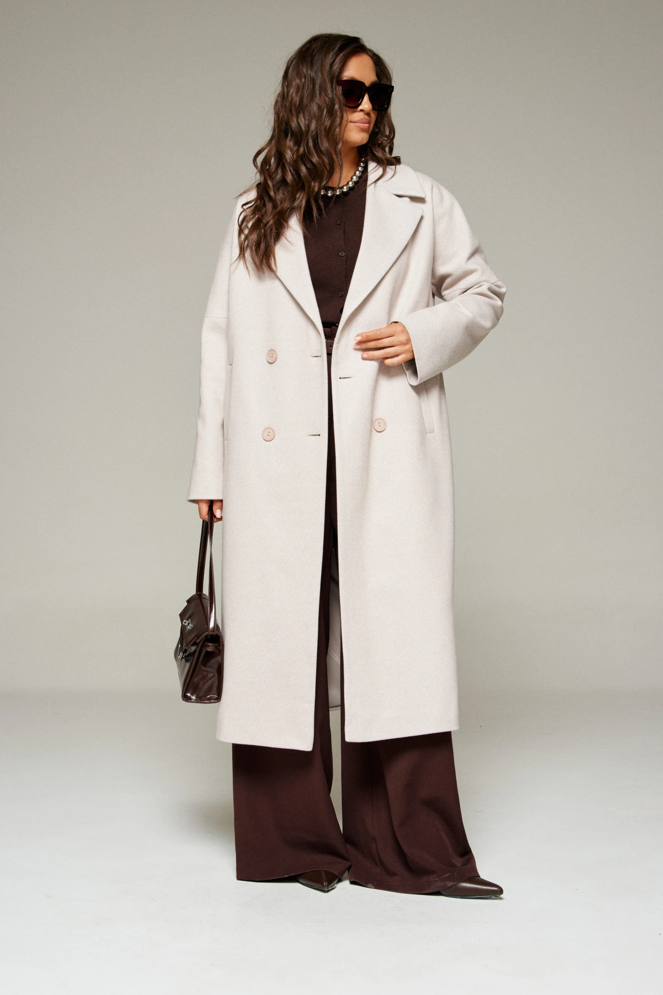 Пальто выполнено из шерстяной ткани, которая обеспечивает теплоизоляцию и защиту от ветра и влаги, подходит для межсезонья и теплой зимы. Двубортное, на подкладке. Изделие рассчитано на температурный режим от +10 до -5 градусов. Модель прямого силуэта, с удлиненной линией плеча и цельнокроеным покроем рукава; предназначена для повседневного использования.