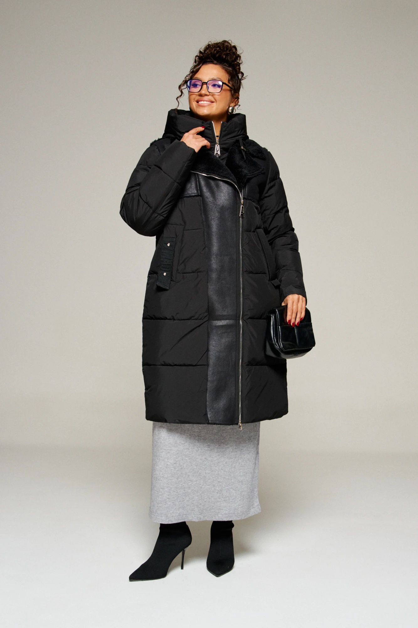 Зимнее, стеганое пальто прямого силуэта для ценителей стиля и практичности. Это отличное сочетание современных материалов и точного кроя.
