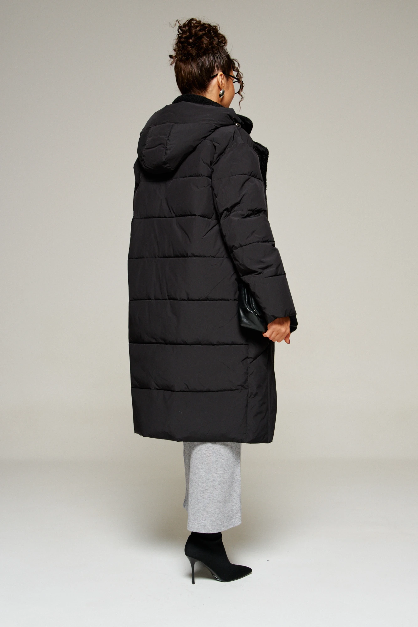 Зимнее, стеганое пальто прямого силуэта для ценителей стиля и практичности. Это отличное сочетание современных материалов и точного кроя.