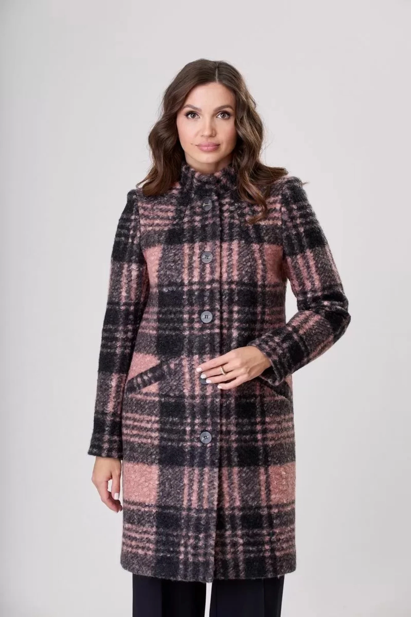 Пальто БелЭльСтиль 786 черно-розовая клетка