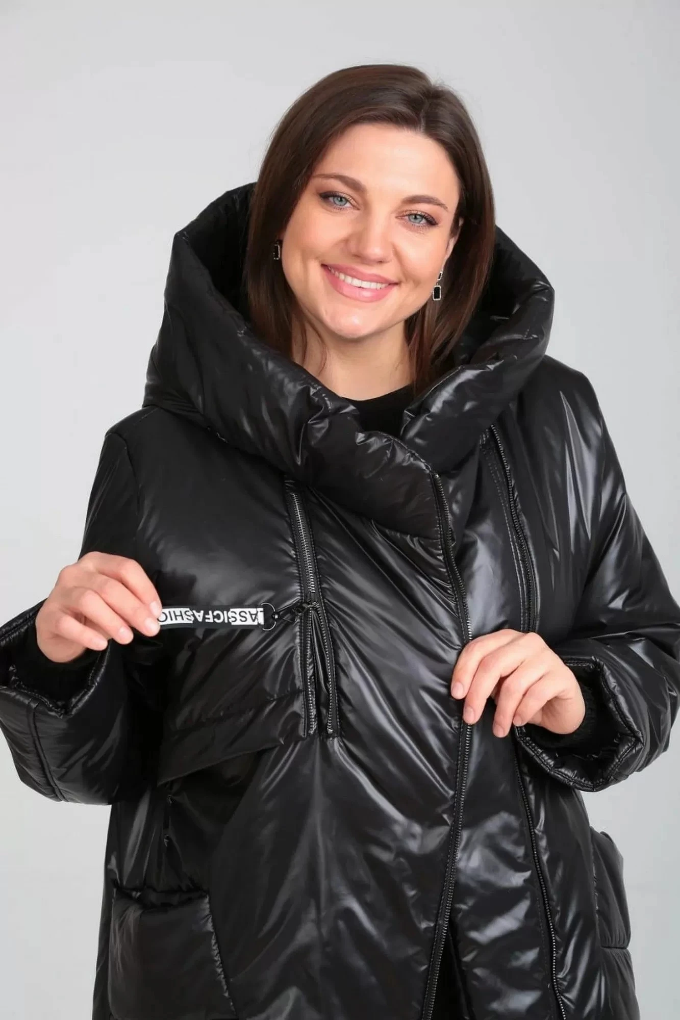Пальтто женское утеплённое с ассиметричной застёжкой"молния" от горловины до низа. Перед с плечевой застёжкой по правой полочке, пристёгнутый на короткую молнию с карабином и "украшением". Карманы боковые прорезные с листочкой. Спинка с отлетной кокеткой. Пальто с отрезными бочками. Воротник капюшон с кулисой и шнуром по средней части для коррекции объёма. Рукав втачной 2-х шовный с трикотажным довязом выглядывающим из под низа рукава. Температурный режим до -15 градусов