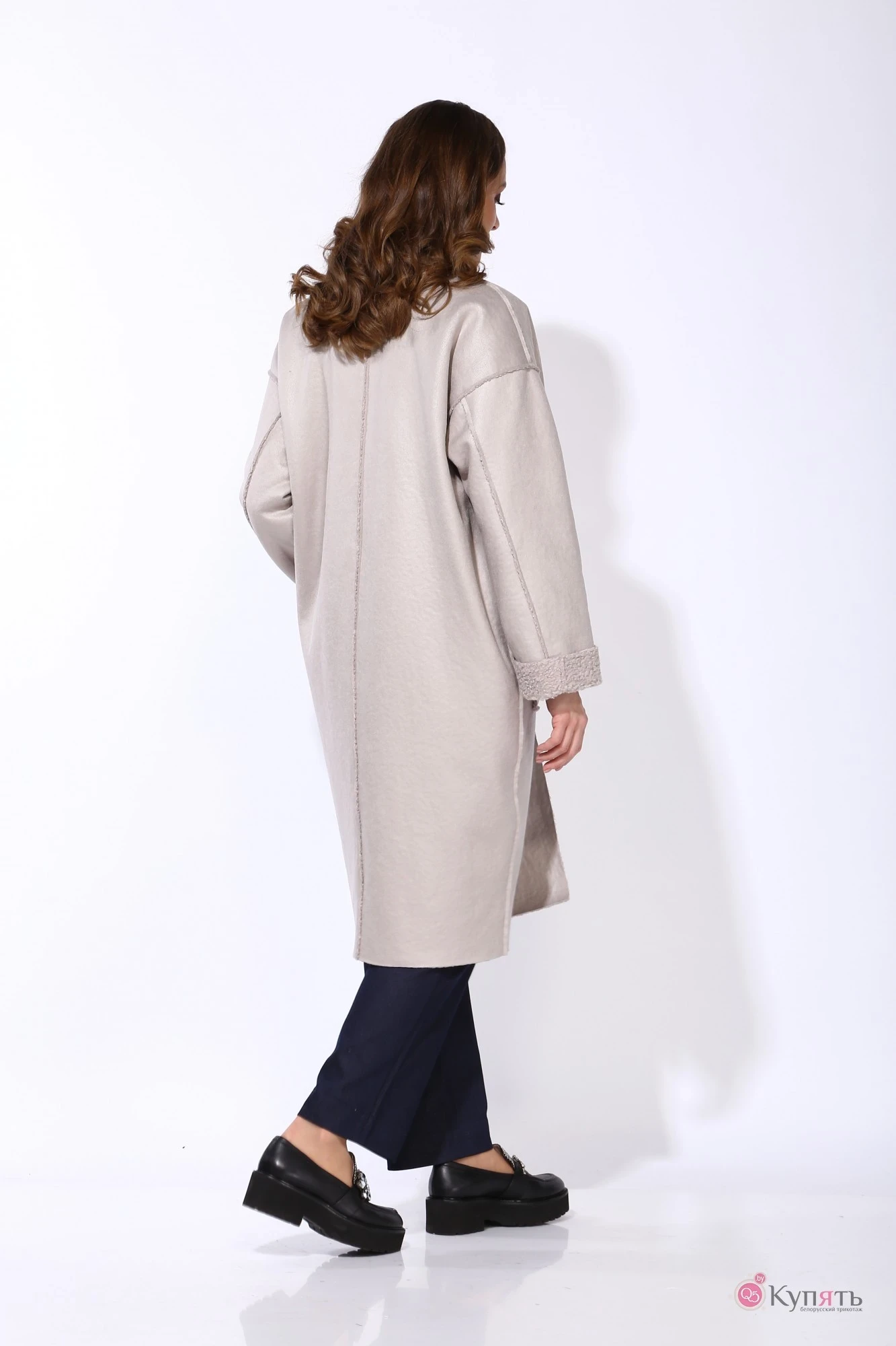 Пальто женское, свободного силуэта, длиной ниже линии колен. Перед с накладными карманами, застежкой на пришивные кнопки. Спинка разрезная. Рукав со спущенной линией плеча. Воротник пиджачного типа. Пальто без подкладки.