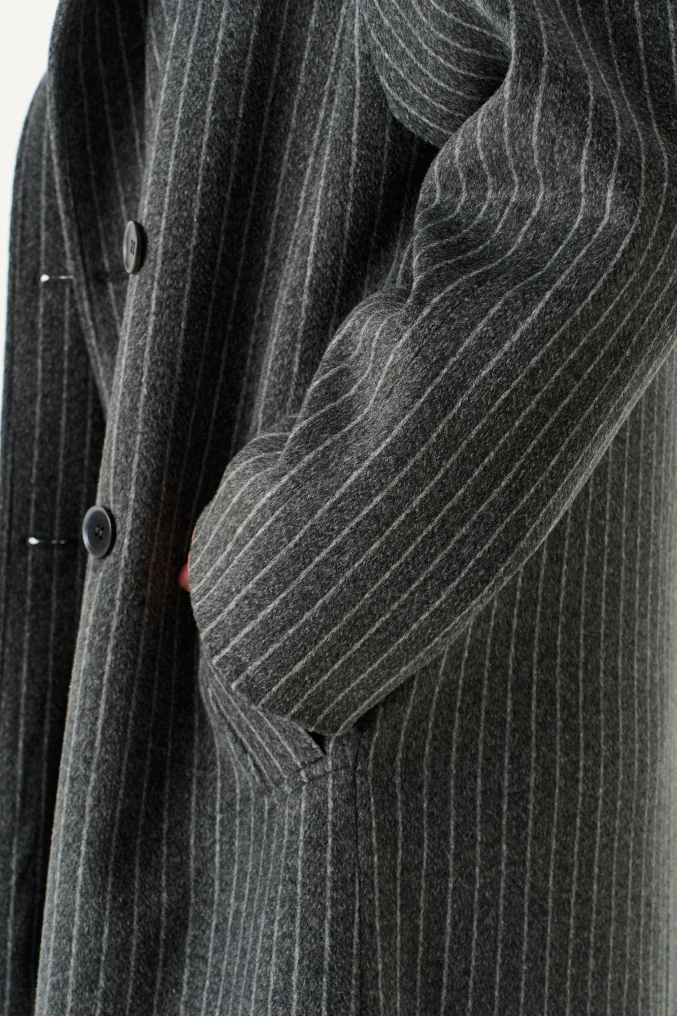 Пальто из трикотажного полотна прямого силуэта, с центральной двубортной застежкой на петли и пуговицы, на подкладке. Воротник – стойка с застежкой на петли и пуговицы. Полочки с прорезными карманами с листочкой. Спинка со средним швом и шлицей. Рукав – реглан. В комплекте пояс из основной ткани.