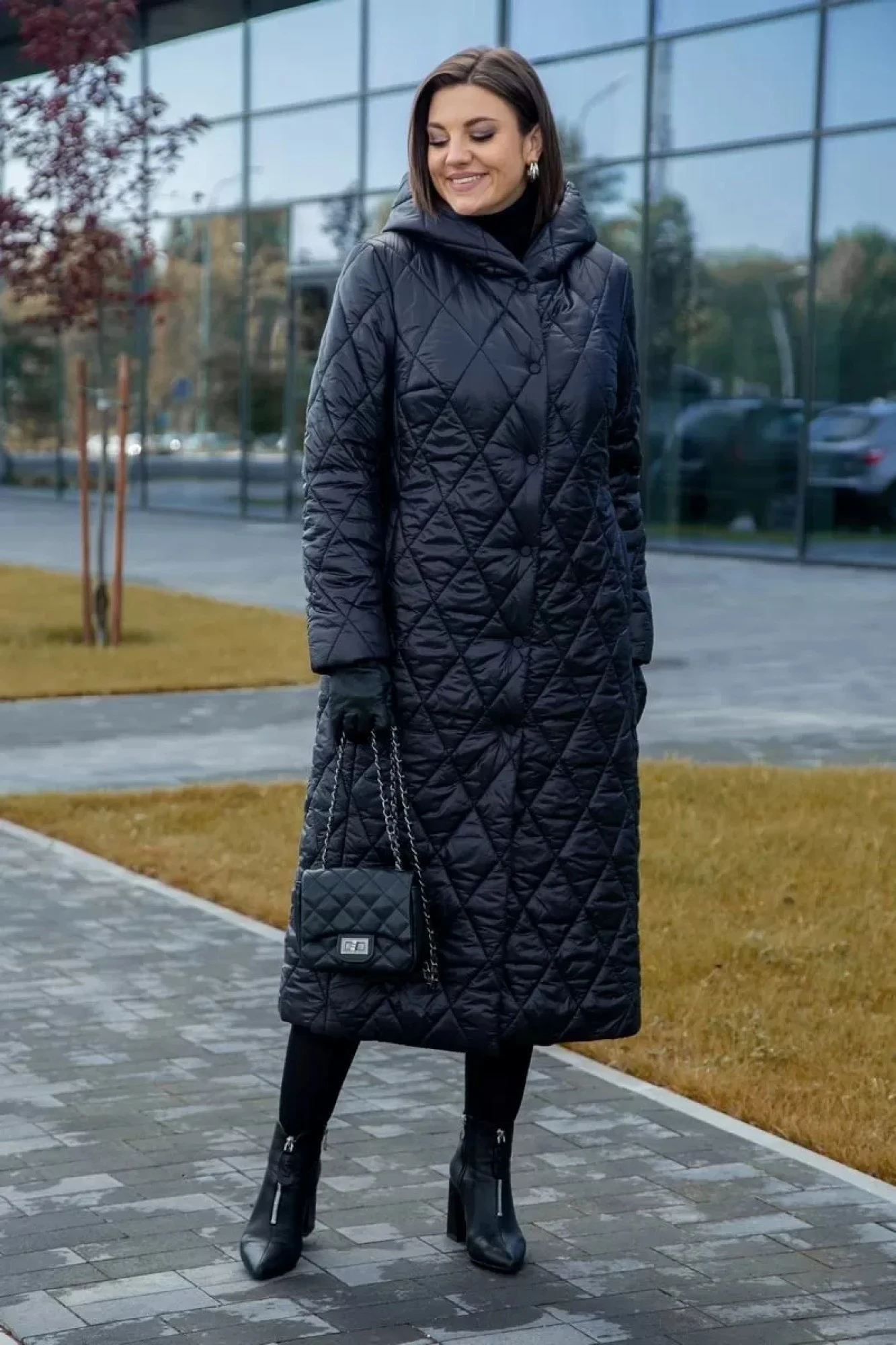 Классическое, стеганое демисезонное пальто, будет дарить вам тепло и уют даже в самую сильную осеннюю непогоду, оно с легкостью станет главной деталью вашего гардероба. Стеганное пальто рассчитано на температуру от +5 до -10 градусов и сшит из высококачественной водоотталкивающей ткани, утеплителя "FeelGood" 150 г./метр кв., подкладкой "Barrier"что делает его устойчивым к продуванию, обеспечивает комфорт и ощущение легкости. А эффектная стеганая отделка в виде ромбов добавляет изделию особый шик и уникальность. Легкое и комфортное, длинное стеганное пальто выполнено в актуальном прямом классическом покрое, с капюшоном, застежка на кнопки и молнию. Французская длина придаст образу женственность и изысканность. Изделие имеет удобные карманы с листочкой, позволяющие вместить все необходимое. Оно отлично подойдет на дождливую осень, теплую зиму, а также станет незаменимой верхней одеждой на демисезон.