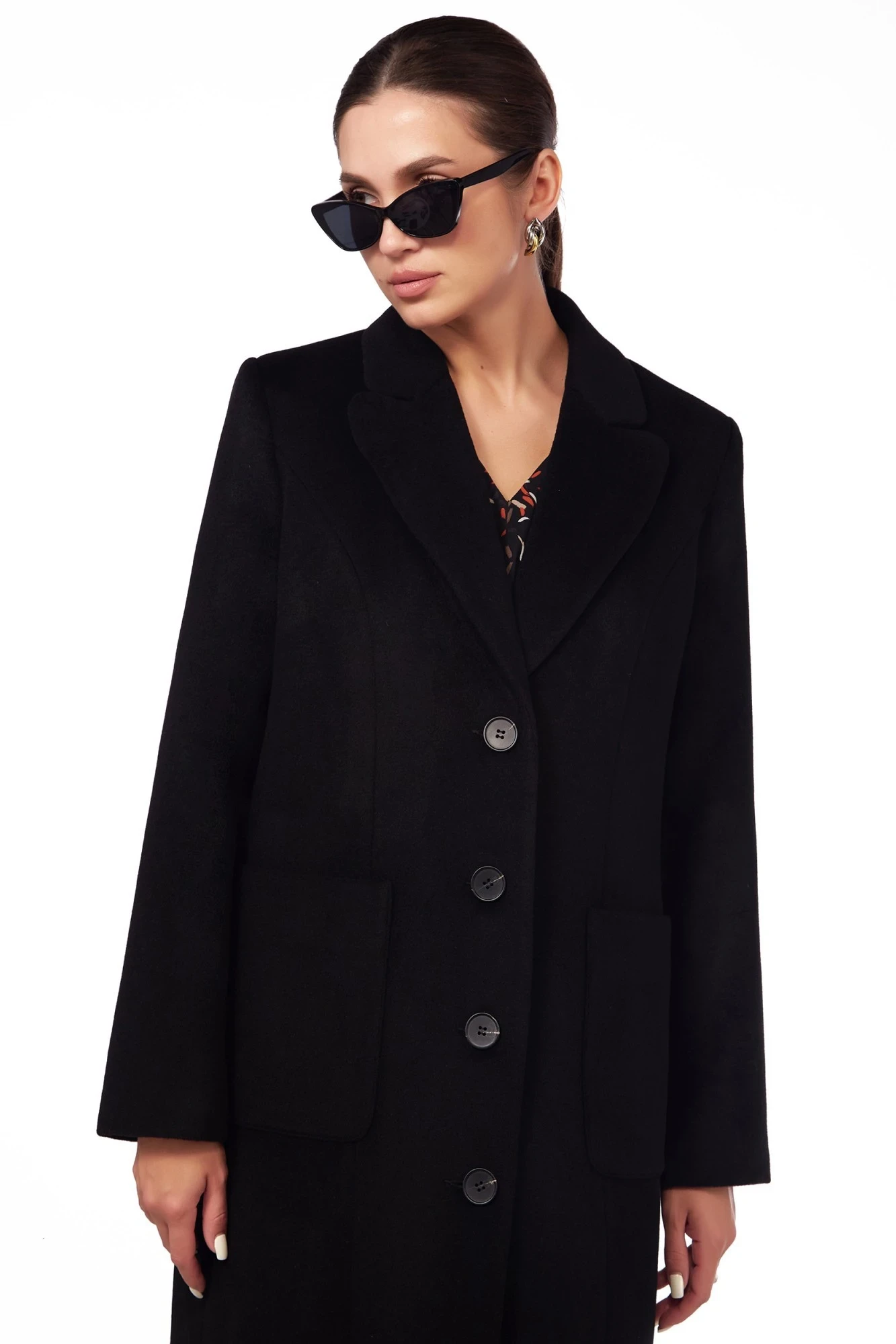 Спортивное пальто модной длины макси, выполнено на основе классического кроя. Силуэт полуприлегающий, застежка на четыре пуговицы, накладные карманы. Впереди рельефы от проймы, по спинке рельефы, центральный шов и высокая шлица. Рукав длинный, по шлице четыре пуговицы. Пальто на контрастной подкладке гранд.
