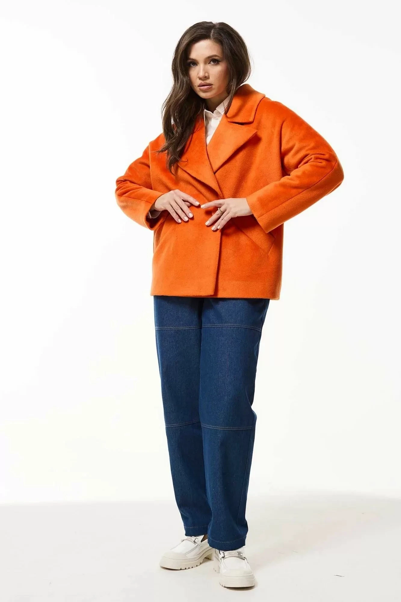 Двубортное полупальто MisLana 1033 оранж