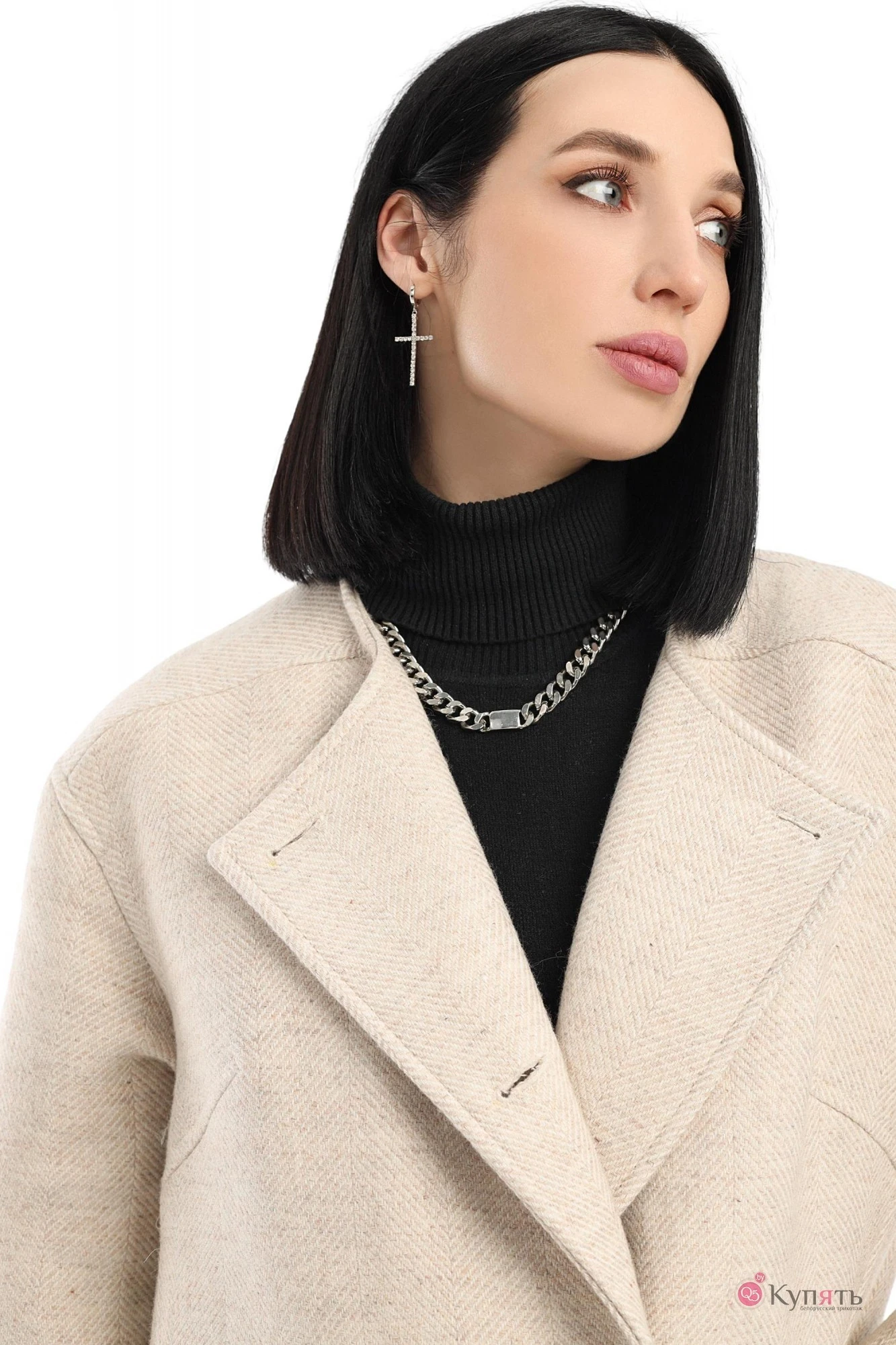 Пальто женское прямого силуэта со смещенной косой бортовой застежкой доверху на 4 потайные кнопки. Пальто свободной формы со спущенным рукавом.
