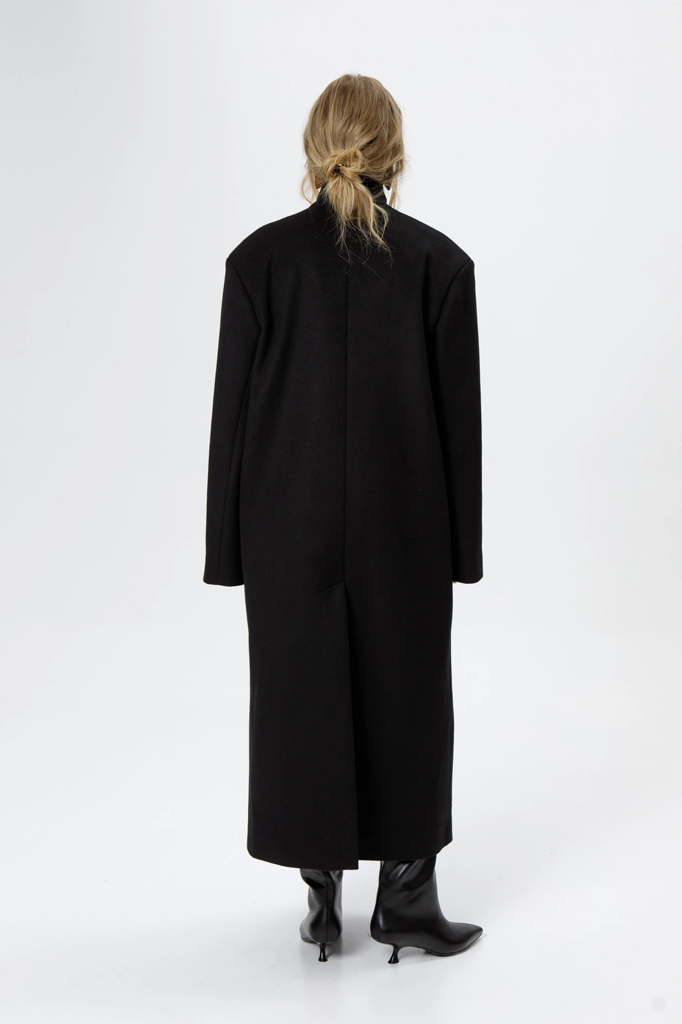 Детали: прямой силуэт, расширенные плечи, пиджачный воротник, застежка однобортная на петли-пуговицы, функциональные карманы, спинка с высокой шлицей, втачные длинные рукава, пальто на подкладке.