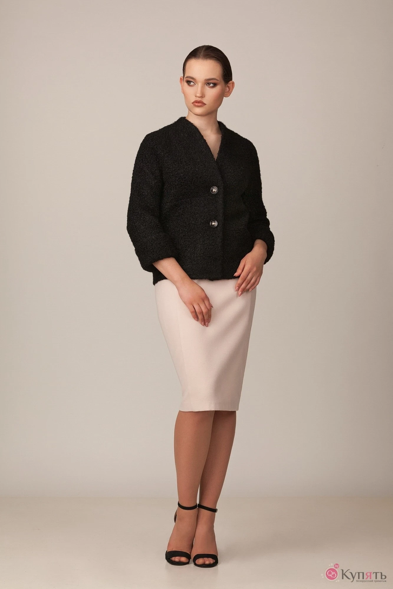 Полупальто из мягкой пальтовой ткани на подкладке. Полупальто прямого силуэта с бортами скругленной формы и цельнокроеной стойкой. Рукава реглан с отложными манжетами, с помощью которых можно легко регулировать длину. Карманы в боковых швах. Жакет застегивается на 1 пуговицу.