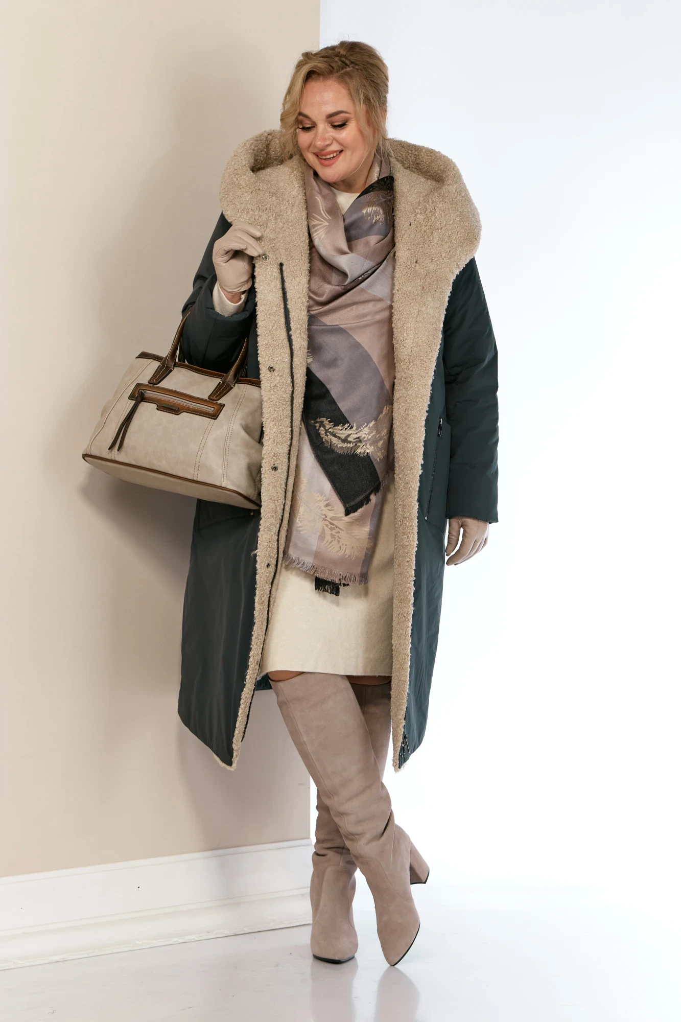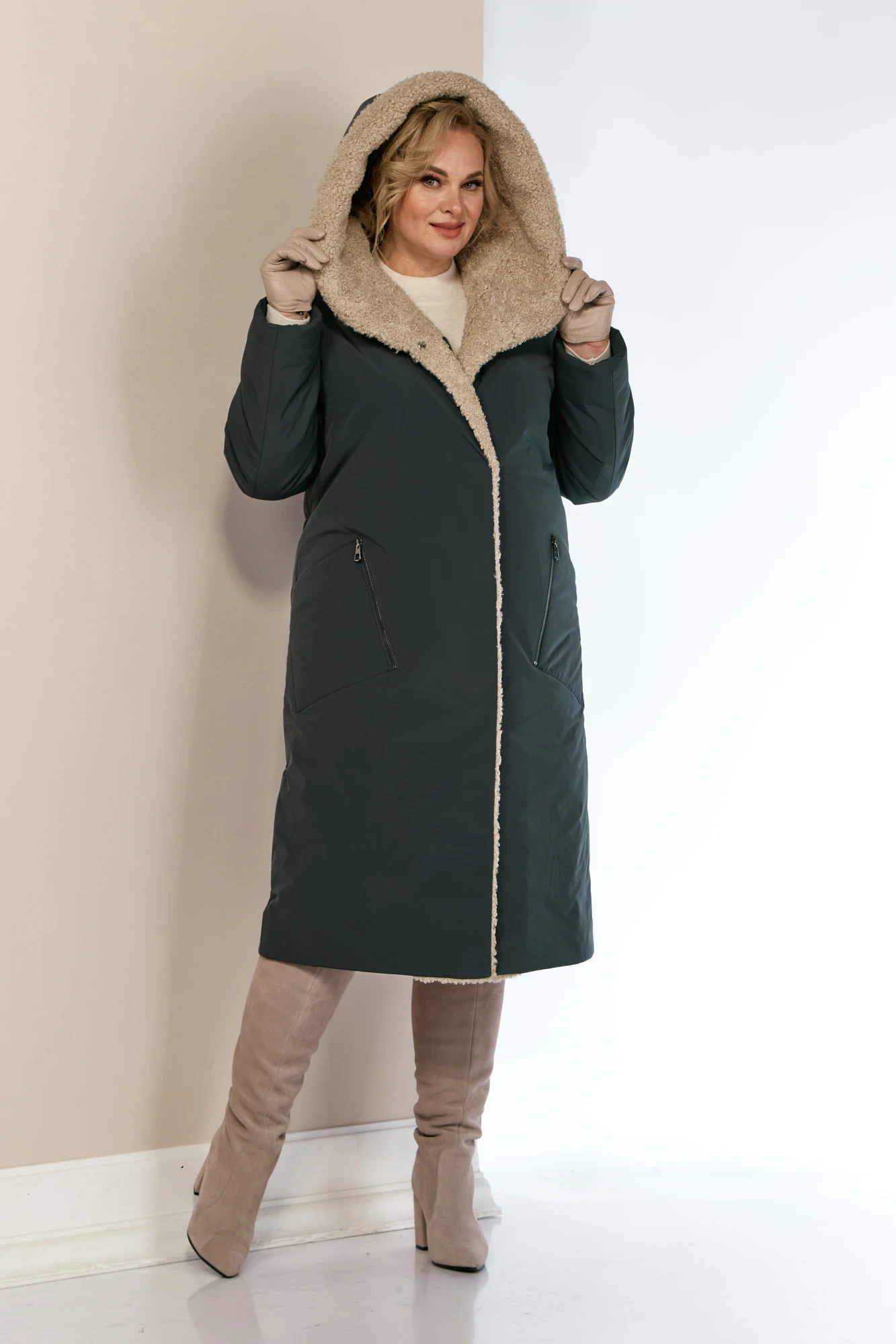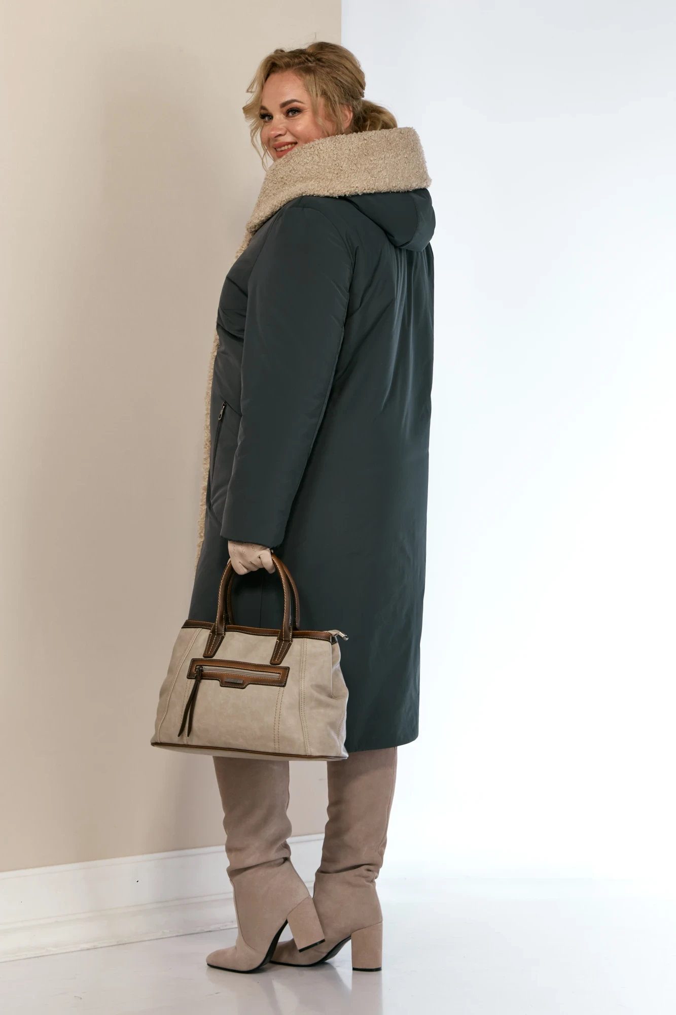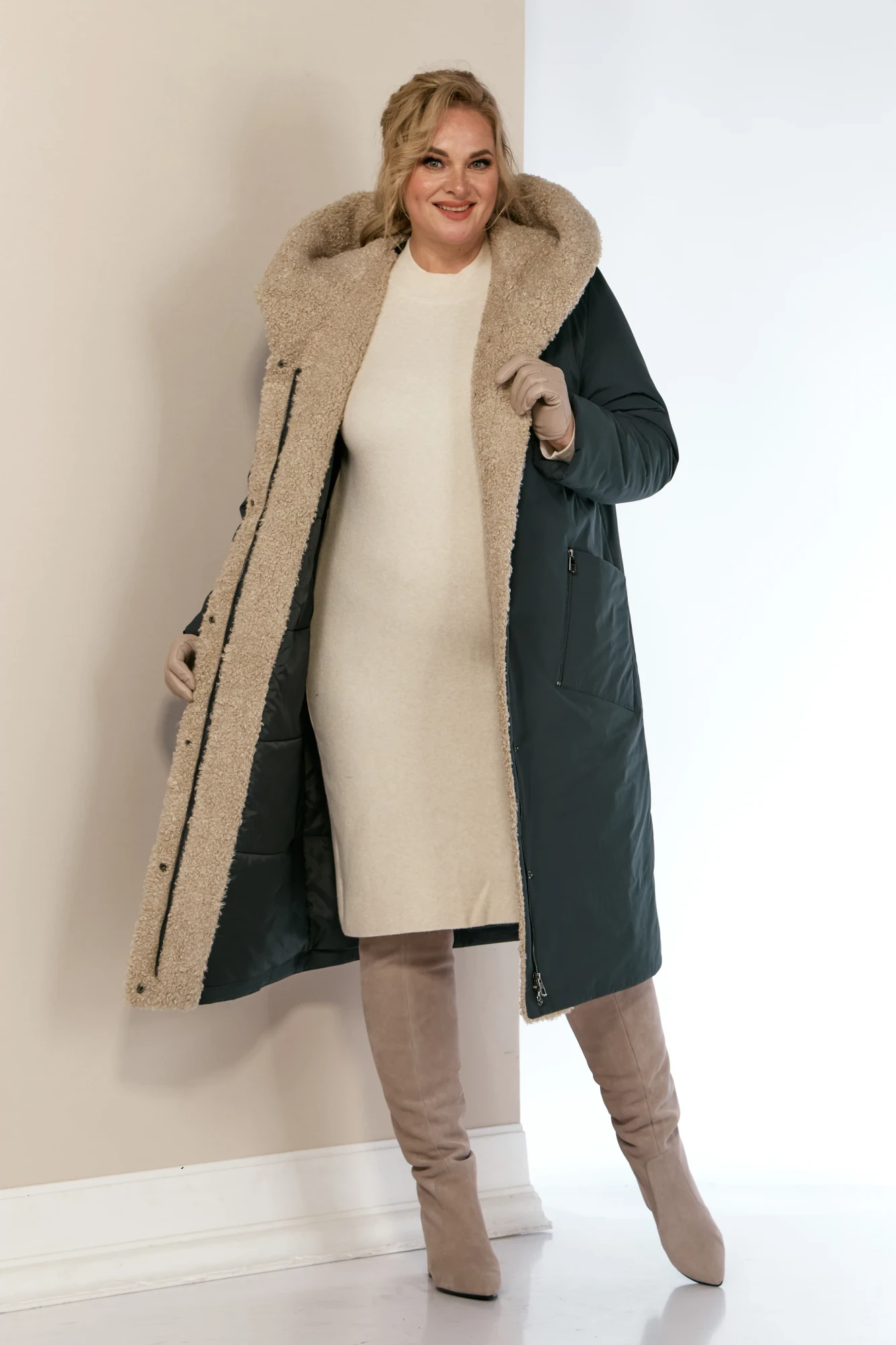 Уютное, элегантное зимнее пальто станет любимой вещью Вашего гардероба! Пальто выполнено из плотной матовой курточной ткани, при этом довольно мягкой, с водоотталкивающей пропиткой. На подкладке. Перед с нагрудными вытачками и функциональными глубокими накладными карманами с декоративной молнией. Рукав втачной двух шовный. Застежка двойная смещенная на тесьму-молнию (двухбегунковая ) по косой и потайными металлическими кнопками. Под борт и капюшон отделаны искусственным мехом, под овчинку, что придает изделию оригинальный вид.