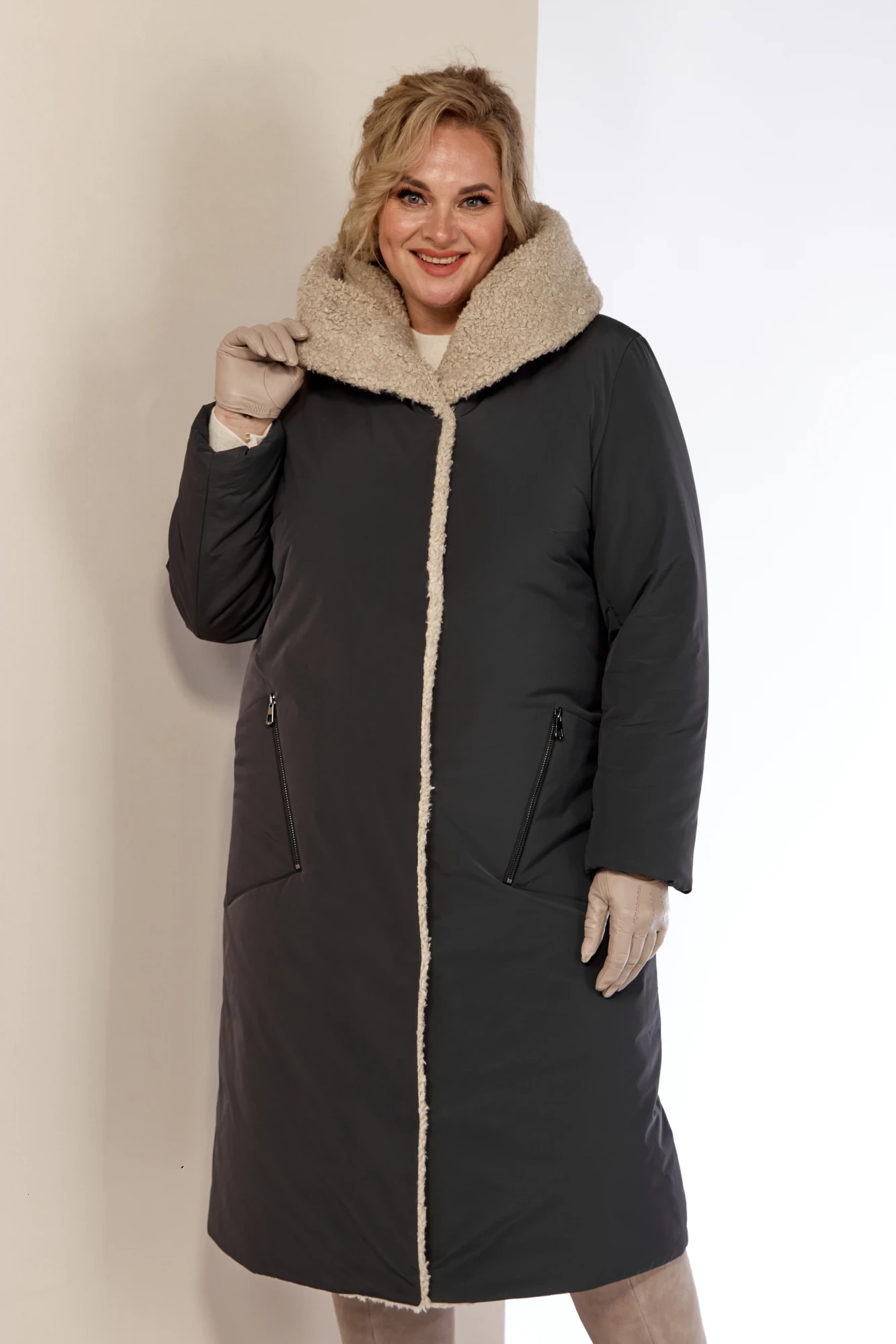 Уютное, элегантное зимнее пальто станет любимой вещью Вашего гардероба! Пальто выполнено из плотной матовой курточной ткани, при этом довольно мягкой, с водоотталкивающей пропиткой. На подкладке. Перед с нагрудными вытачками и функциональными глубокими накладными карманами с декоративной молнией. Рукав втачной двух шовный. Застежка двойная смещенная на тесьму-молнию (двухбегунковая ) по косой и потайными металлическими кнопками. Под борт и капюшон отделаны искусственным мехом, под овчинку, что придает изделию оригинальный вид.