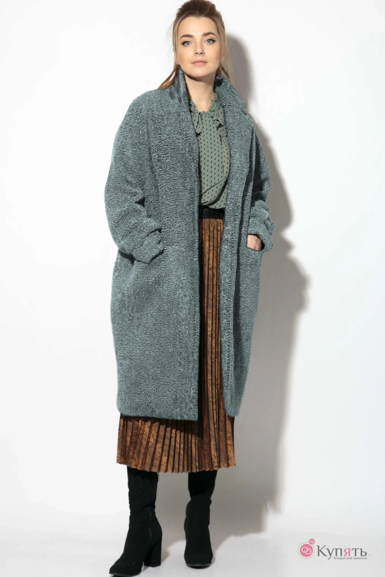 Стильное демисезонное пальто из искусственного меха под каракуль. Пальто оверсайз. Свободное и невероятно комфортное. По переду подрез с функциональными карманами. Застежка на пришивные кнопки. Пальто для истинных модниц.