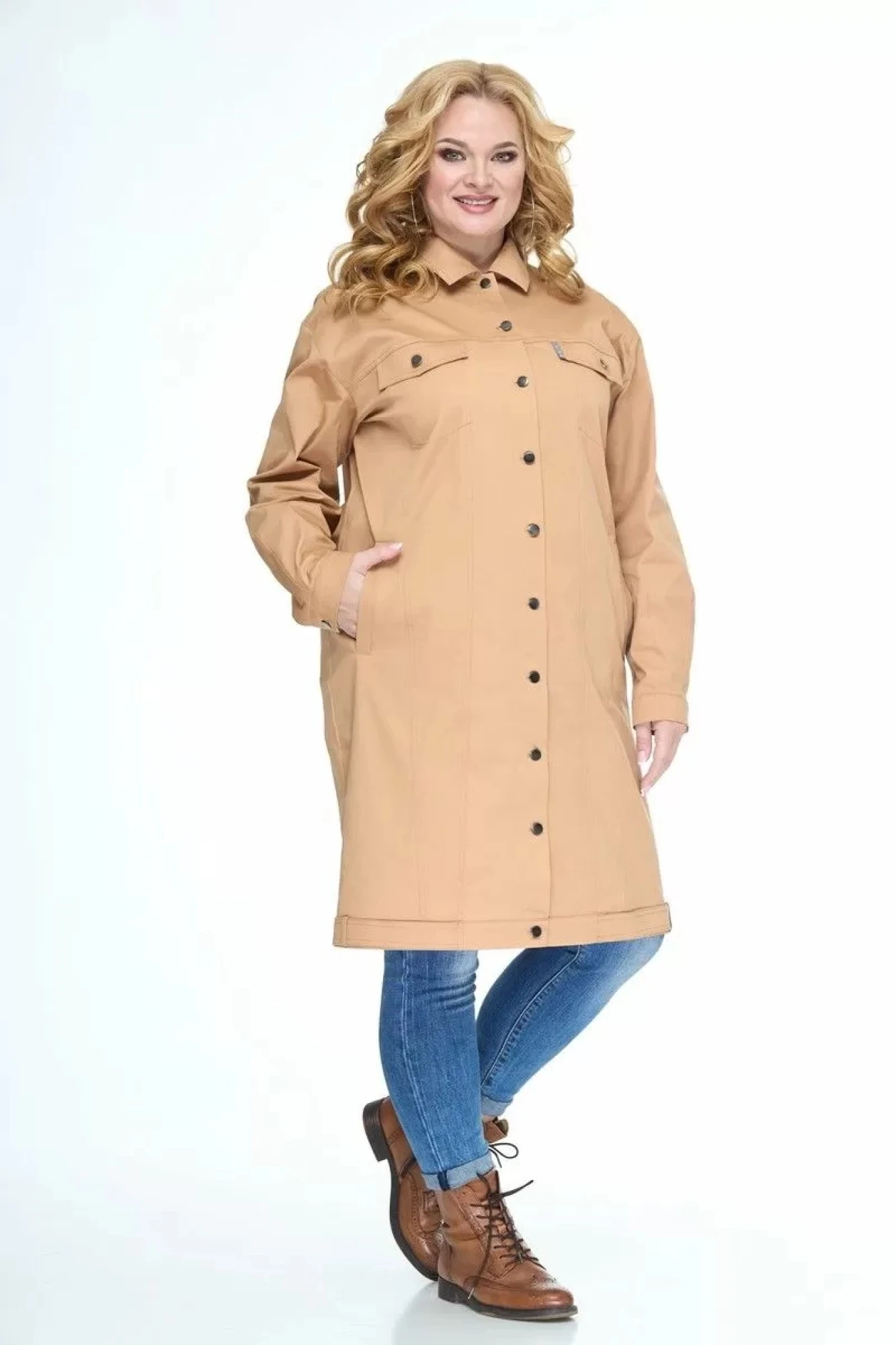 Прямой силуэт, спущенная линия плеча, втачной двушовный рукав с притачными манжетами. По переду кокетки, в шве притачивания которых расположены функциональные карманы с клапаном. Воротник рубашечного типа. Застёжка на металлические пуговицы-болты по всей длине. В боковых швах -внутренние карманы .По спинке притачная кокетка с элементом декора. Низ изделия с притачной деталью и регулируемыми патами на пуговицах-болтах.