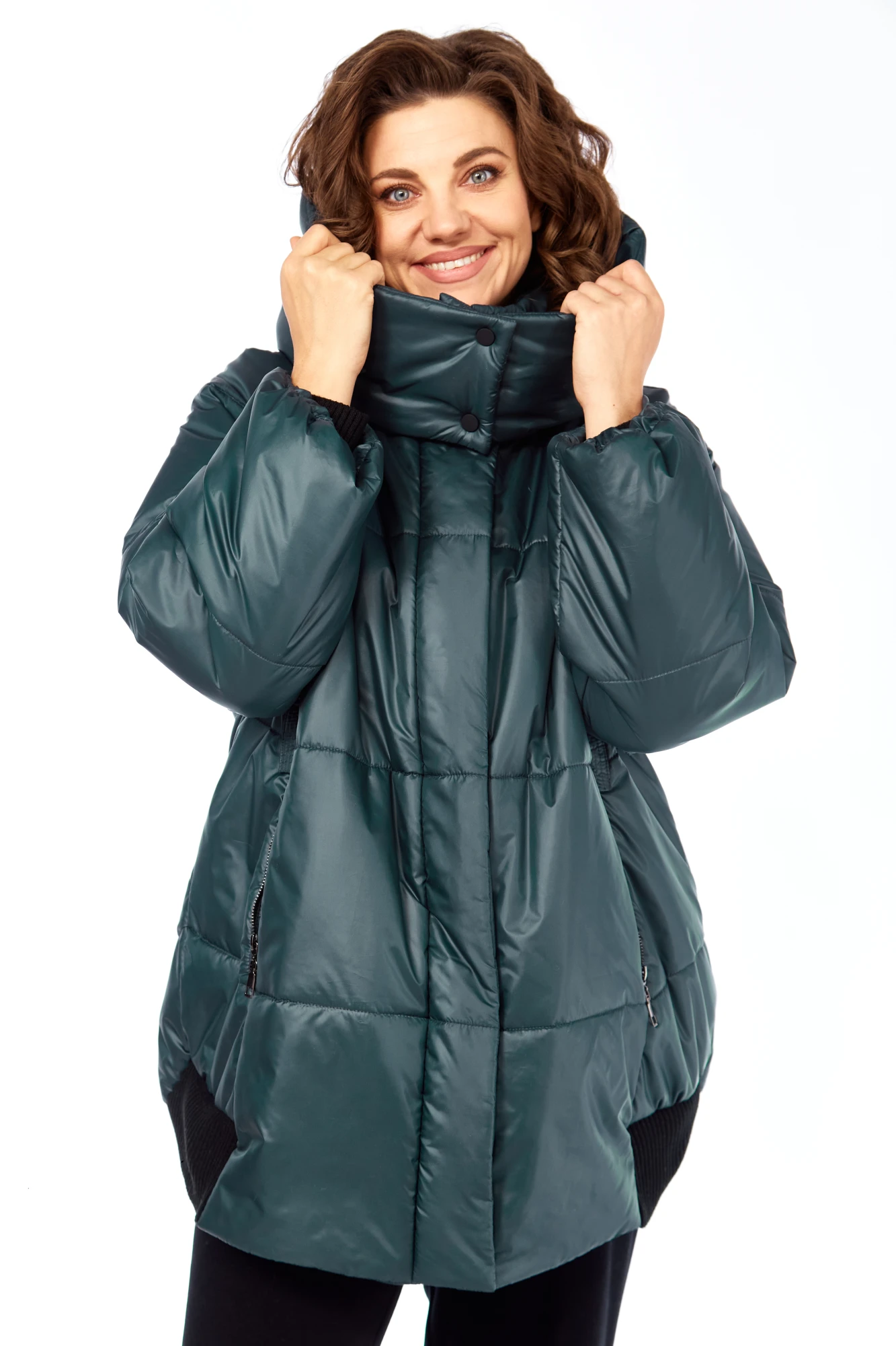 Куртка женская, прямого силуэта с рукавом реглан. Застежка центральная на тесьму молнию и планку с кнопками. По спинке рельефные швы. По переду рельефные швы, в швах карманы с молнией и отделочной деталью, по низу боковых швов-довяз. Рукав реглан с вытачкой и манжетом(довяз)- по низу. Воротник стойка. Капюшон с центральной частью, с отделочной деталью по отлету (застежка на кнопки)-съемный, фиксируется с помощью кнопок. На центральной части под молнией -ветровик. В качестве отделки используется фурнитура и детали. Температурный режим до -10 градусов.