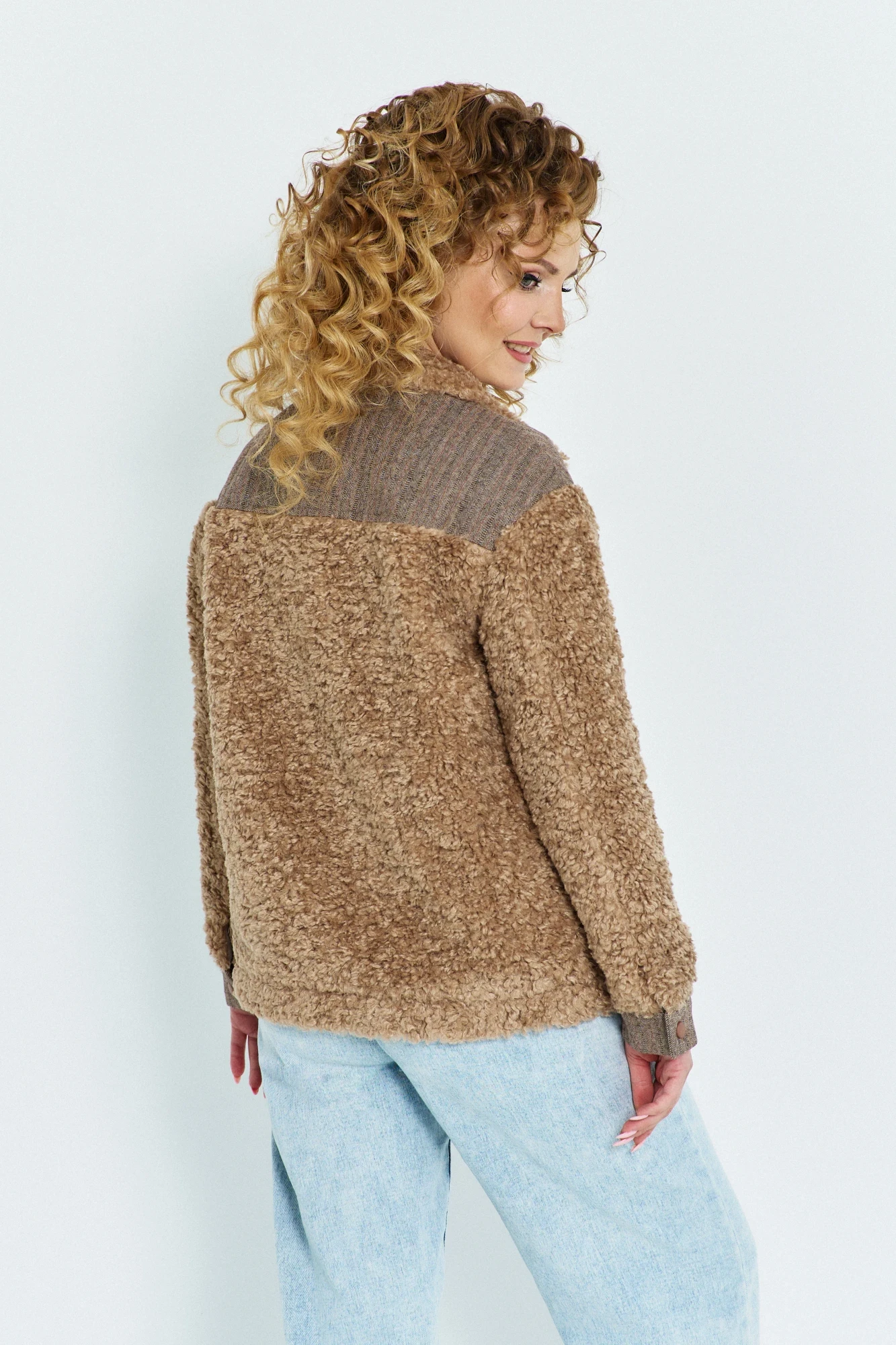 Жакет женский выполнен в сочетании костюмной хлопковой ткани и искусственного меха, изделие свободного кроя . На полочке и спинке изделия расположена контрастная кокетка, рукав втачной длинный с манжетой по низу, горловина- отложной воротник на стойке. Застежка петли-кнопки на планке. без утеплителя