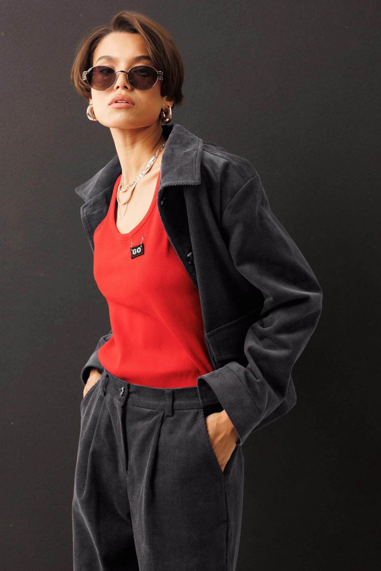 Современный жакет из хлопкового вельвета от GO составит беспроигрышную комбинацию с вашими платьями, юбками и брюками.