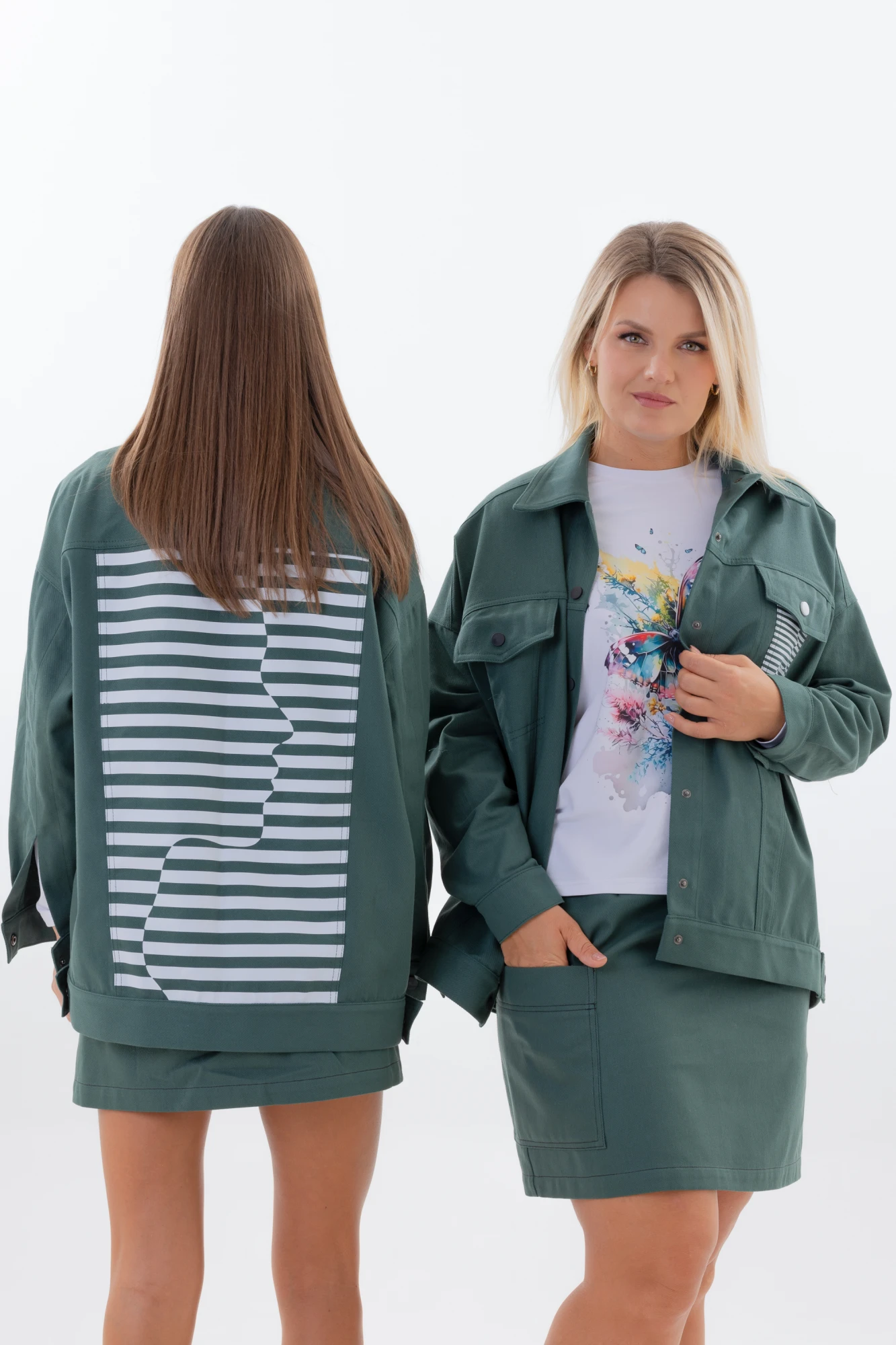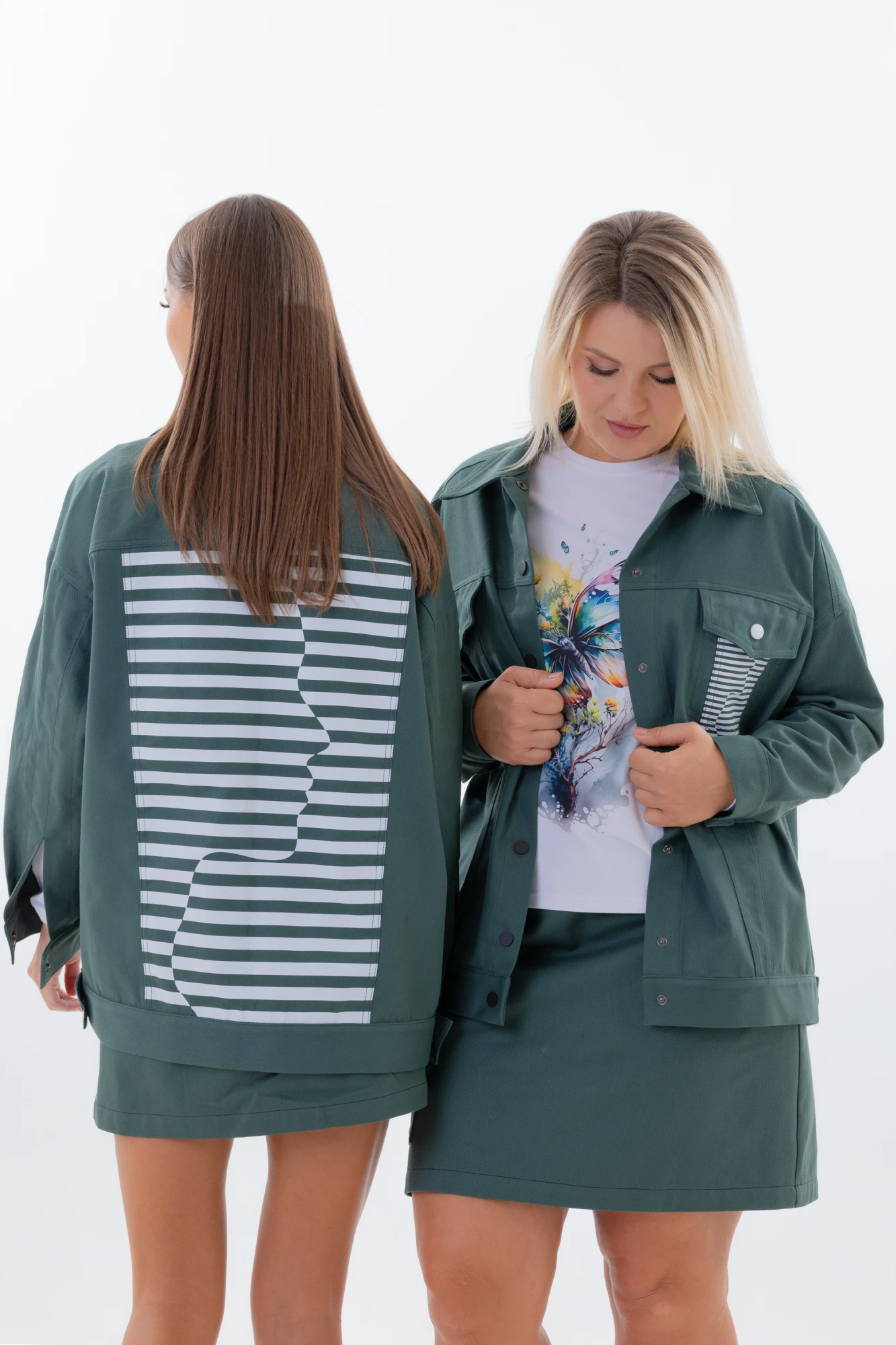 Прочный деним гарантирует износостойкость и комфорт, а свободный крой позволяет легко сочетать жакет с худи, платьями, брюками или шортами. Идеальный выбор для тех, кто ценит баланс между утилитарностью и смелым самовыражением.