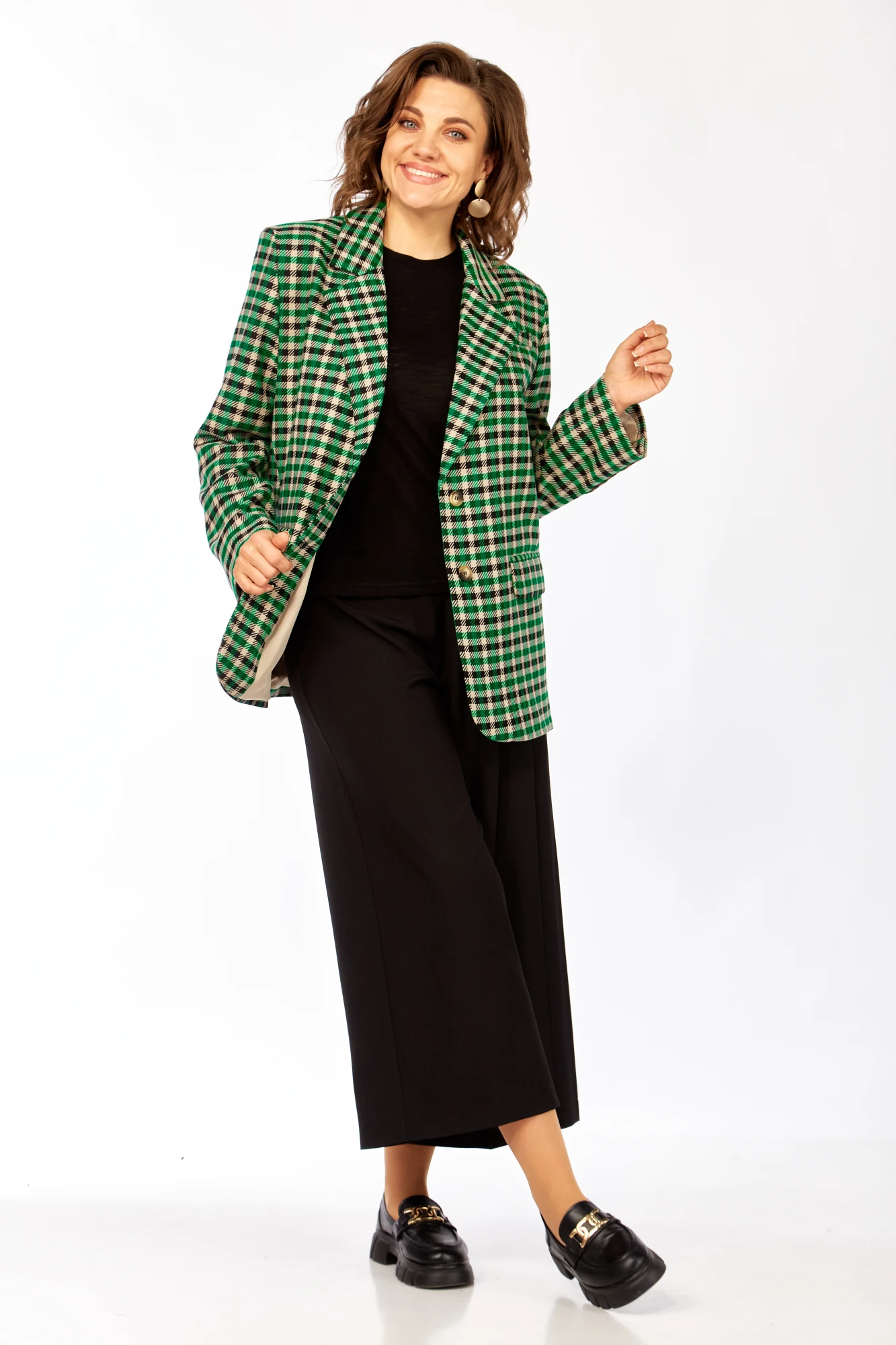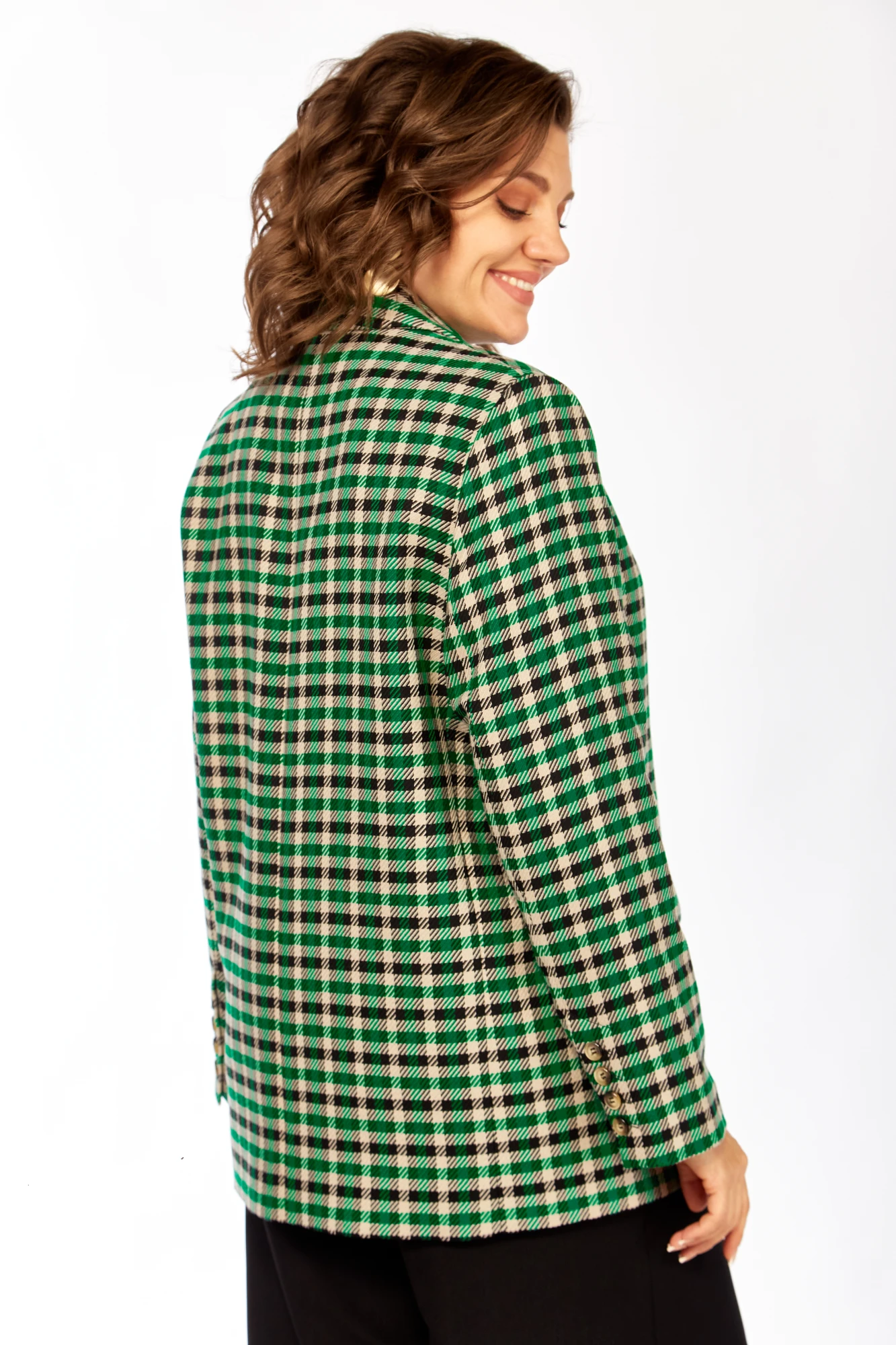 Жакет Rishelie 1014 клетка чёрный +ярко зелёный +бежевый