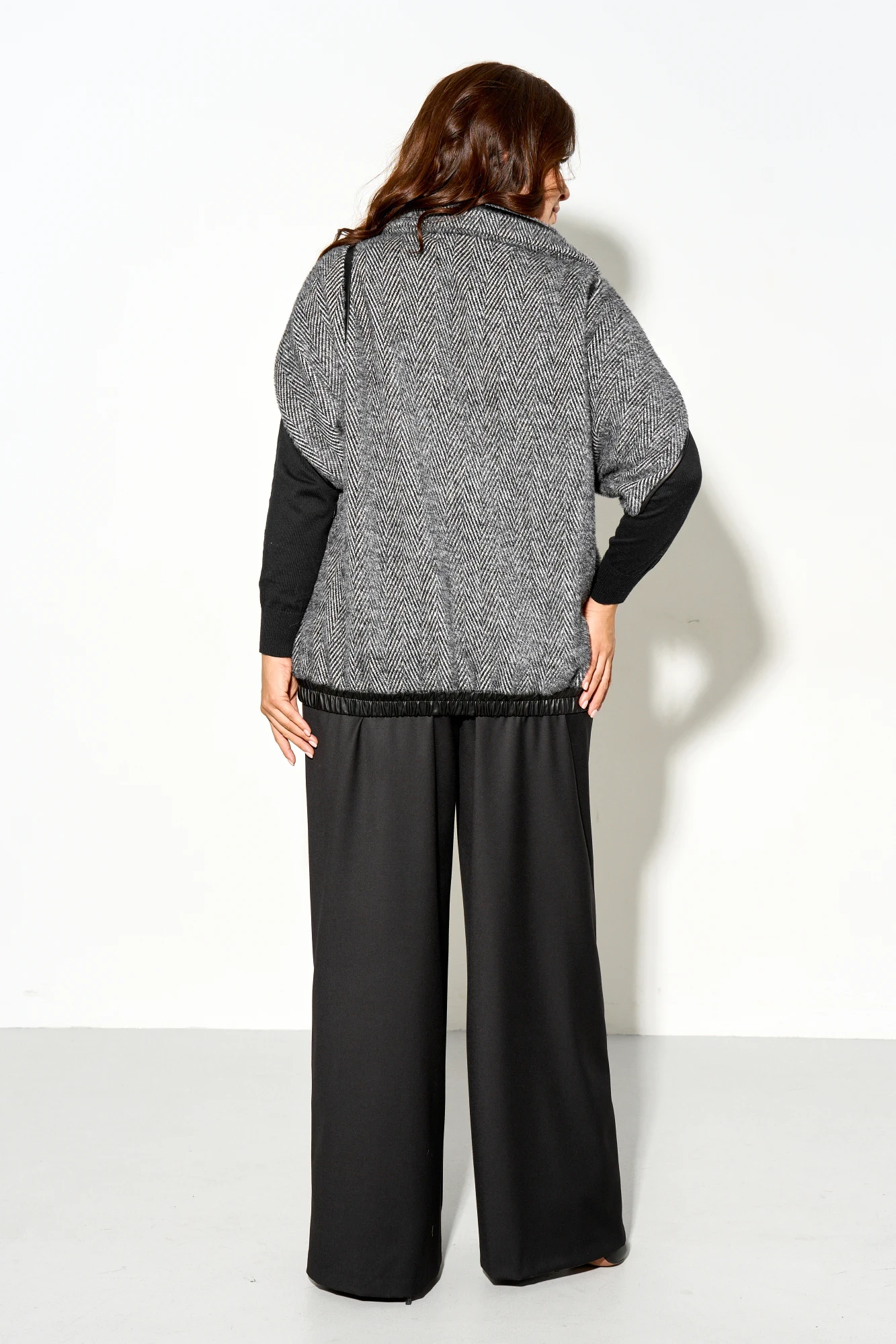 Стильный женский жилет свободного силуэта выполнен из меха с коротким ворсом; отделка изделия по воротнику, рукавам , карманам и низу изделия из ЭКО-кожи. Жилет полностью соответсвует заявленному размеру. Пожалуйста, пользуйтесь таблицей обмеров готового изделия. Рекомендуется химчистка. Длина 70 см