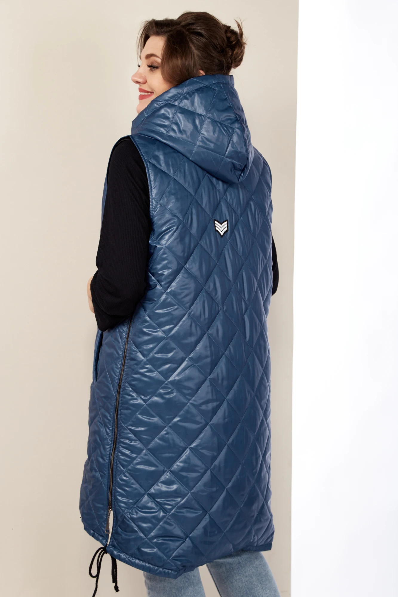 Женская удлиненная стеганная жилетка, отлично дополнит ваш осенне-весенний гардероб. Выполненна из плащевой ткани и утепленная синтепоном. Изделие на подкладке. Застежка центральная на молнии (двухбегунковая). По переду карманы прорезного типа. Капюшон не съемный. Боковые швы декорированы молнией, что позволяет создавать разрезы разной высоты. Низ изделия фигурный, спинка длиннее переда. Свободный крой обеспечивает идеальную посадку на любую фигуру, а углубленная пройма позволит носить утепленные худи, плотный трикотаж и свитшоты из различных материалов не сковывая ваших движений. Практичный, стильный жилет, очень удобный в носке и прослужит вам очень долго при аккуратном ношении и бережном уходе.