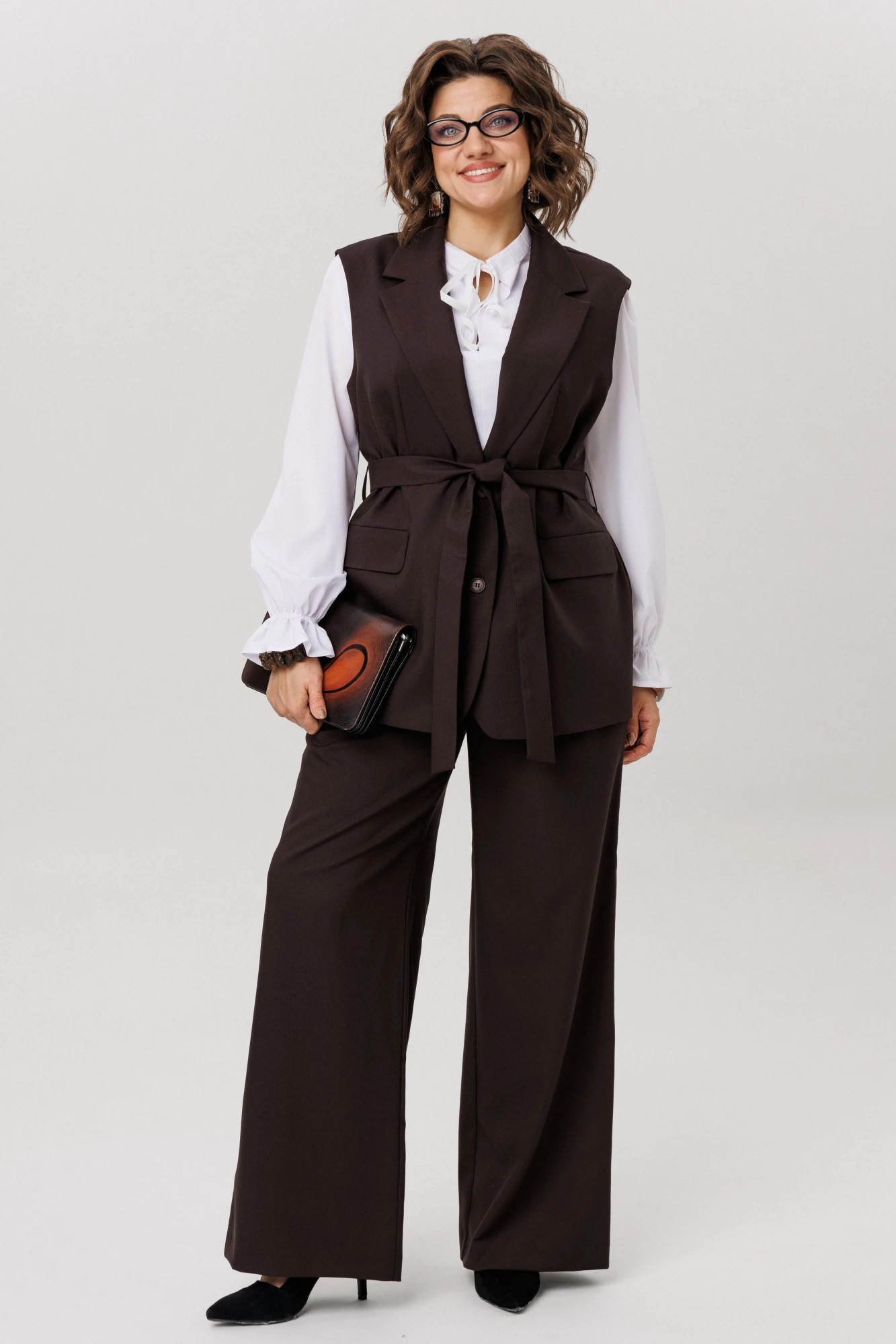 На модели в жилете цвета «грозовая туча» брюки 1702 и топ 767. Также можно купить жилет и брюки в костюме 1501.