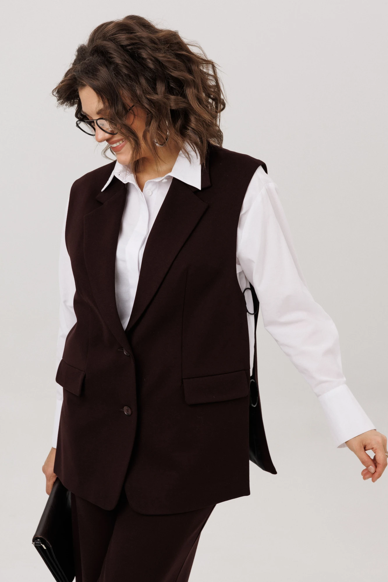 Этот элегантный трикотажный жилет, получивший гордое имя «хранитель колец», станет ключевым элементом вашего гардероба. Его строгий прямой силуэт и подкладка обеспечивают безупречную посадку, а пиджачный воротник с отложными лацканами придает образу солидность и завершенность.