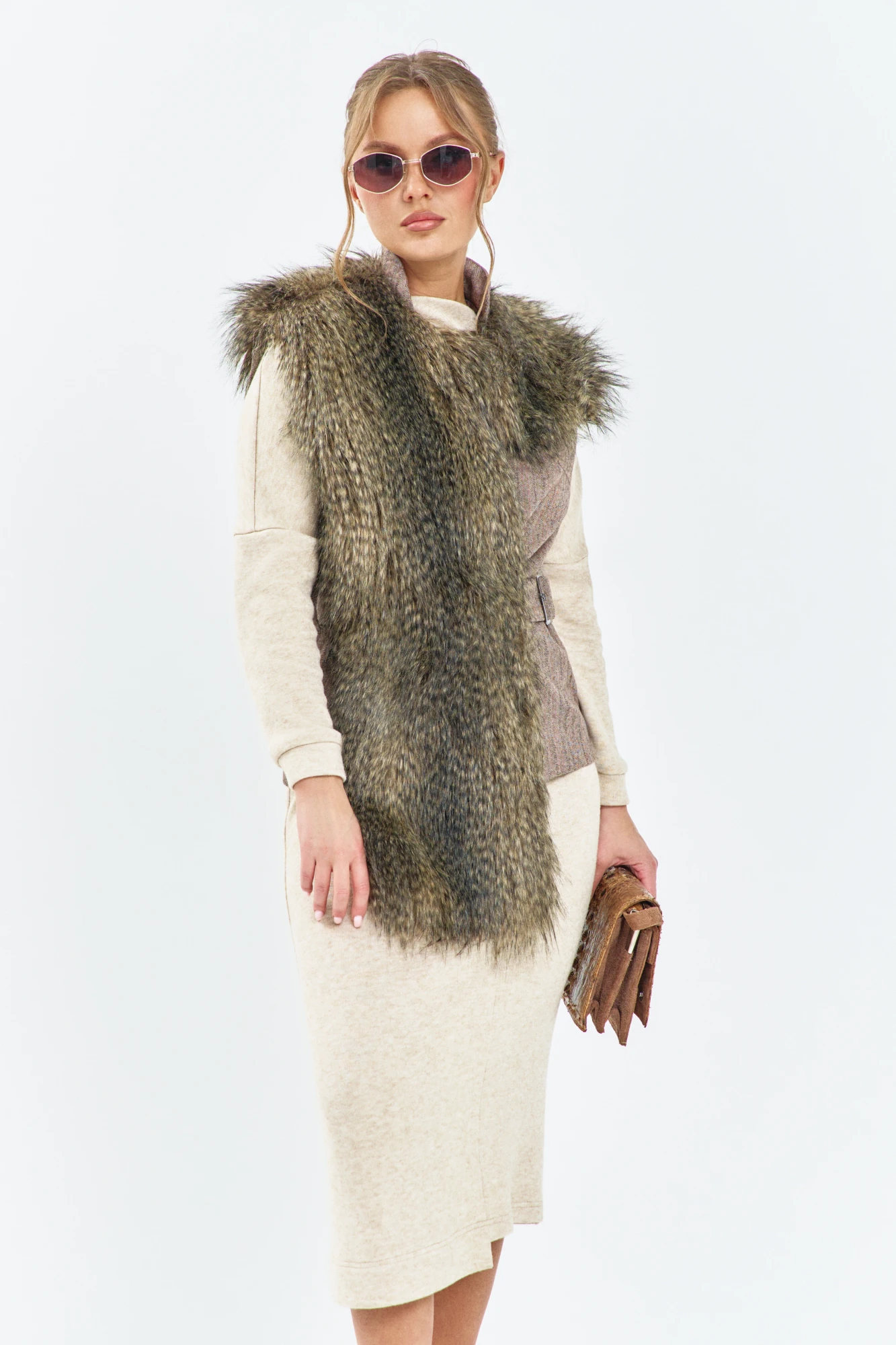 Жилетка Euromoda 657 коричневый мех енота