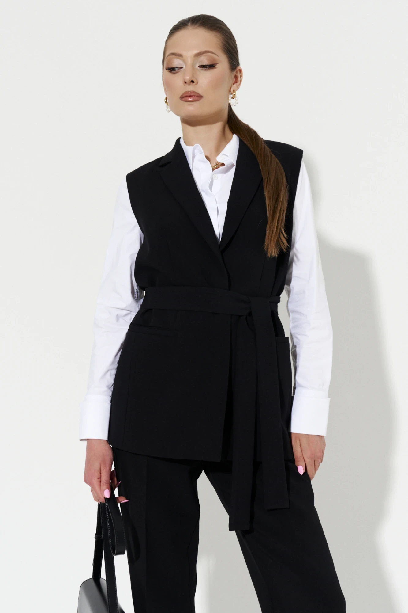 Жилет женский из поливискозной ткани для повседневной носки. Изделие полуприлегающего силуэта без рукавов. Жилет на поливискозной подкладке. Центральная бортовая застежка на петли пуговицы. По переду располагаются прорезные карманы. Длина изделия классическая. Очень красивый классический вариант жилета, который будет стильно смотреться под любой ваш образ.