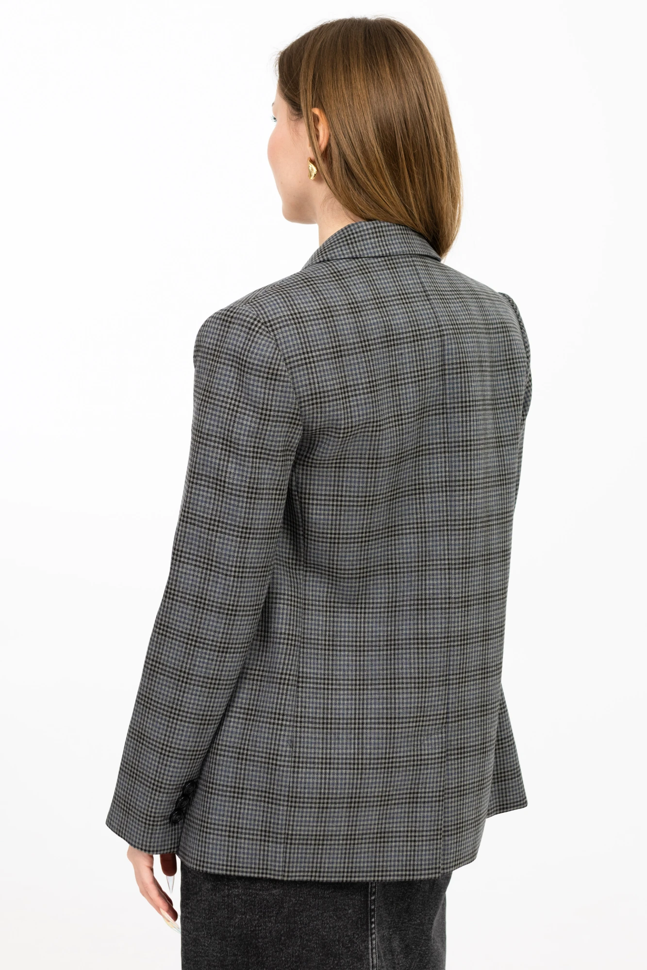 Жакет прямого свободного силуэта , длиной 81 см, с двубортной застёжкой на петли -пуговицы.