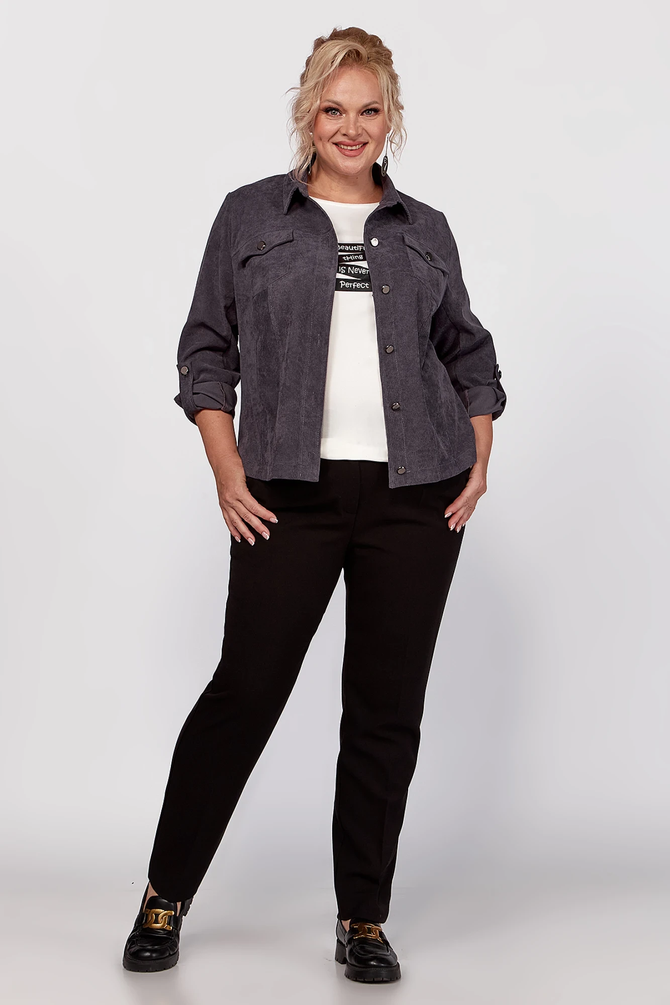 Женский жакет из штрукса - универсальный элемент всесезонной верхней одежды в гардеробе каждой современной девушки. Материал легкий и мягкий, приятный телу. Укороченная свободная курточка на пуговицах, с длинными рукавами подойдет на любой случай. Жакет прямого кроя с рельефными швами и кокетками по переду и спинке, накладными карманами с клапанами и декоративными металлизированными пуговицами. В рукавах предусмотрены паты с пуговицей, что позволяет сделать рукав короче. Модель актуальна как под брючки, так и хорошо смотрится в тандеме с платьем. Красивый крой и современный дизайн позволяют легко сочетать жакет с любыми элементами гардероба, создавая множество стильных образов.
