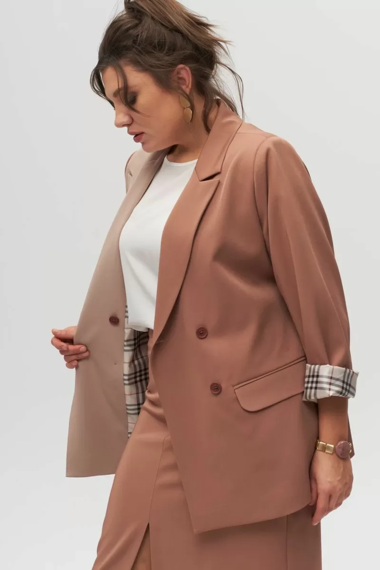 Двухцветный жакет (пиджак) Anelli 1315 бежевый+капучино