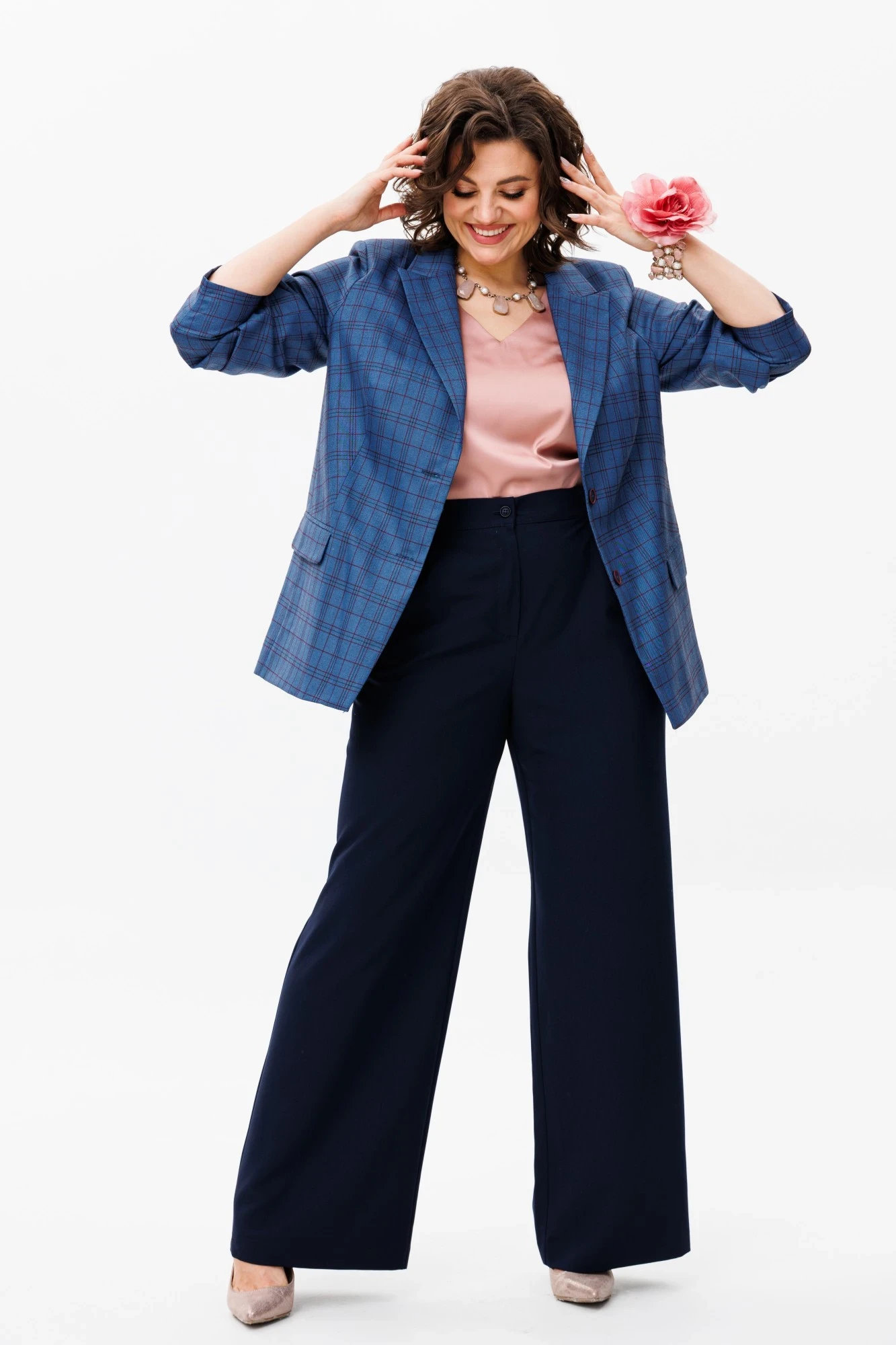 Преобразите свой стиль с нашим элегантным однобортным жакетом в красивую клетку.