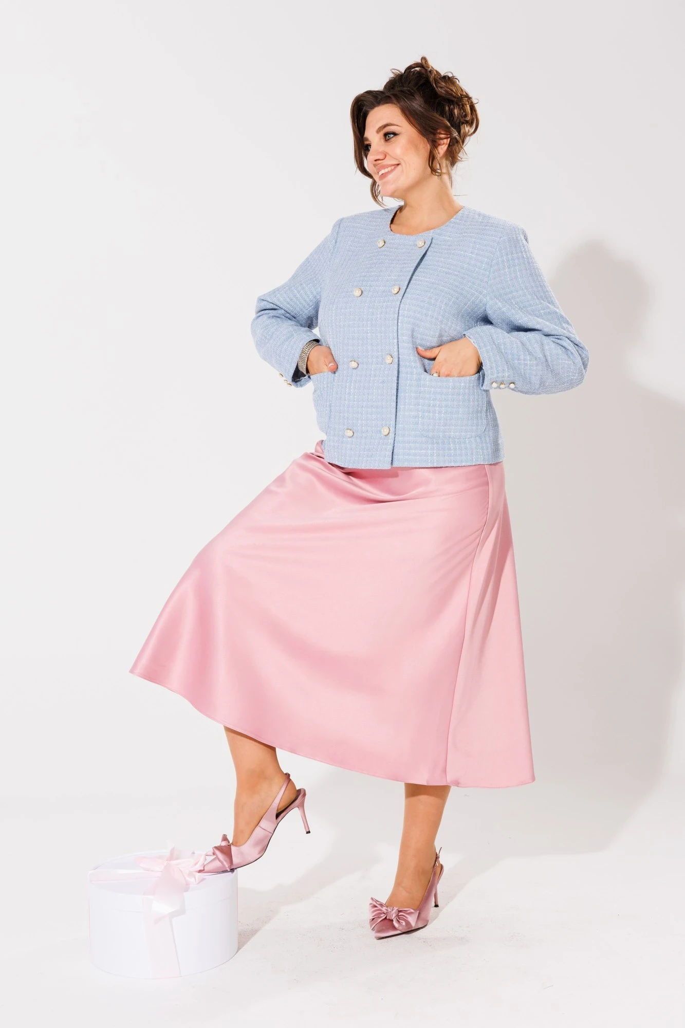 Классический принт и изысканный, весенний цвет создают гармоничное сочетание стиля и утонченности. Этот жакет идеально подходит как для повседневного образа, придавая каждому дню нотку роскоши, так и для особых моментов, внося неповторимый шарм в праздничный стиль.