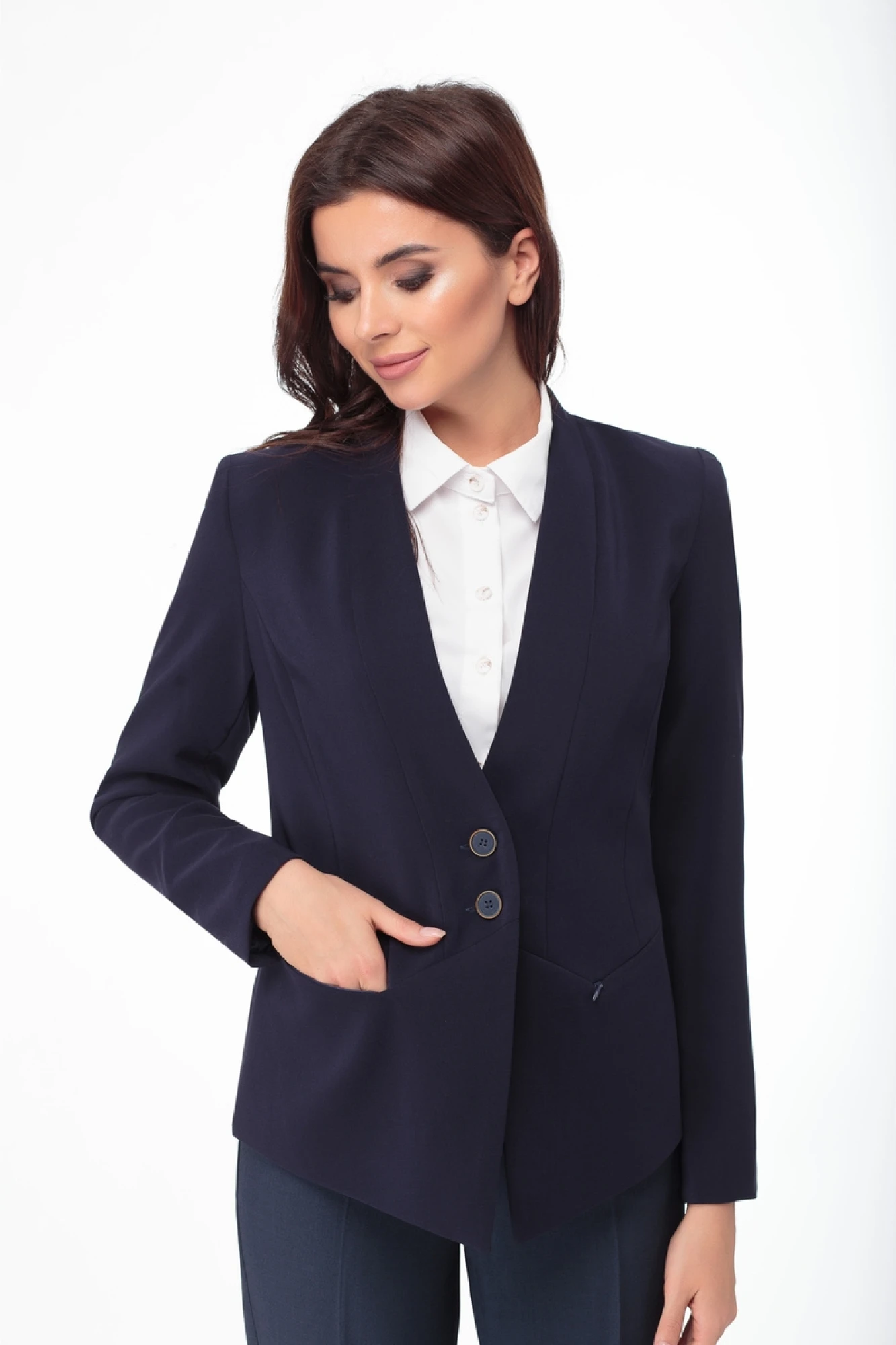 Что делает жакет особенным? Безусловно, правильные конструкторские линии, напоминающие грани драгоценного камня и приподносят фигуру так, как правильно выбранная огранка алмаза!
