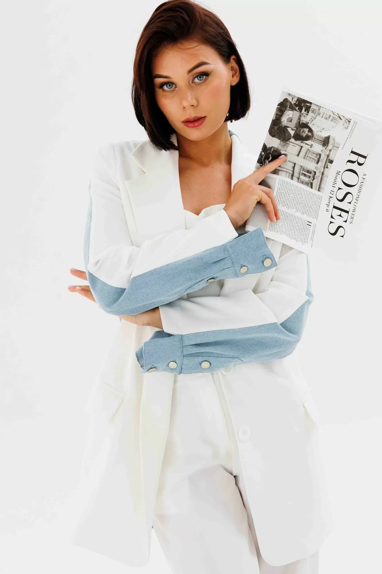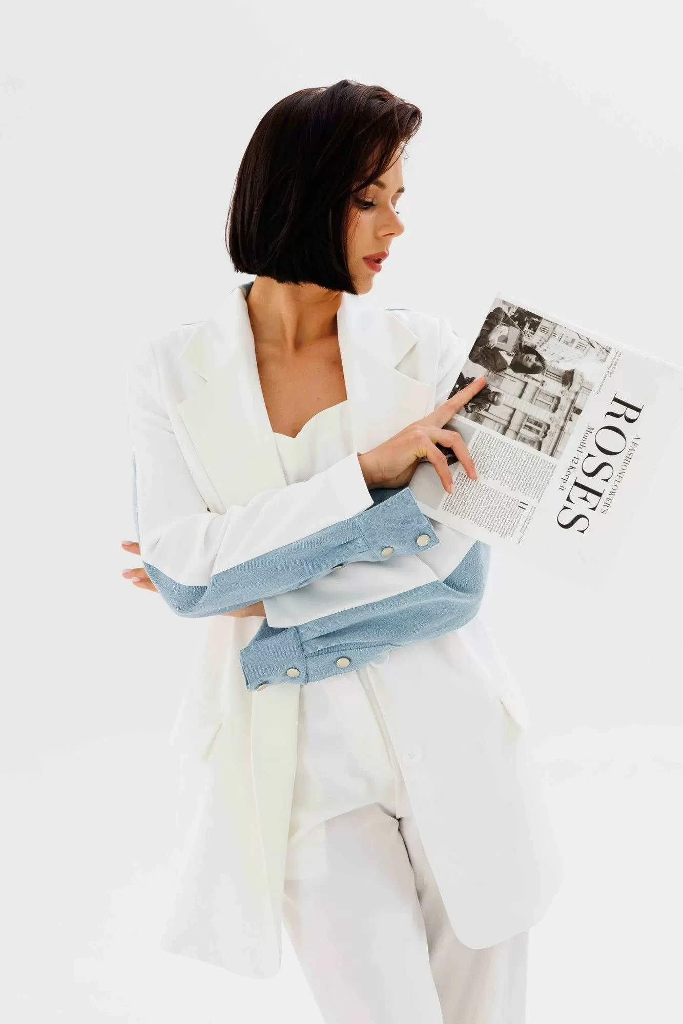 Комбинированный жакет (пиджак) AURA of the day 1106 белый + светло-голубой деним