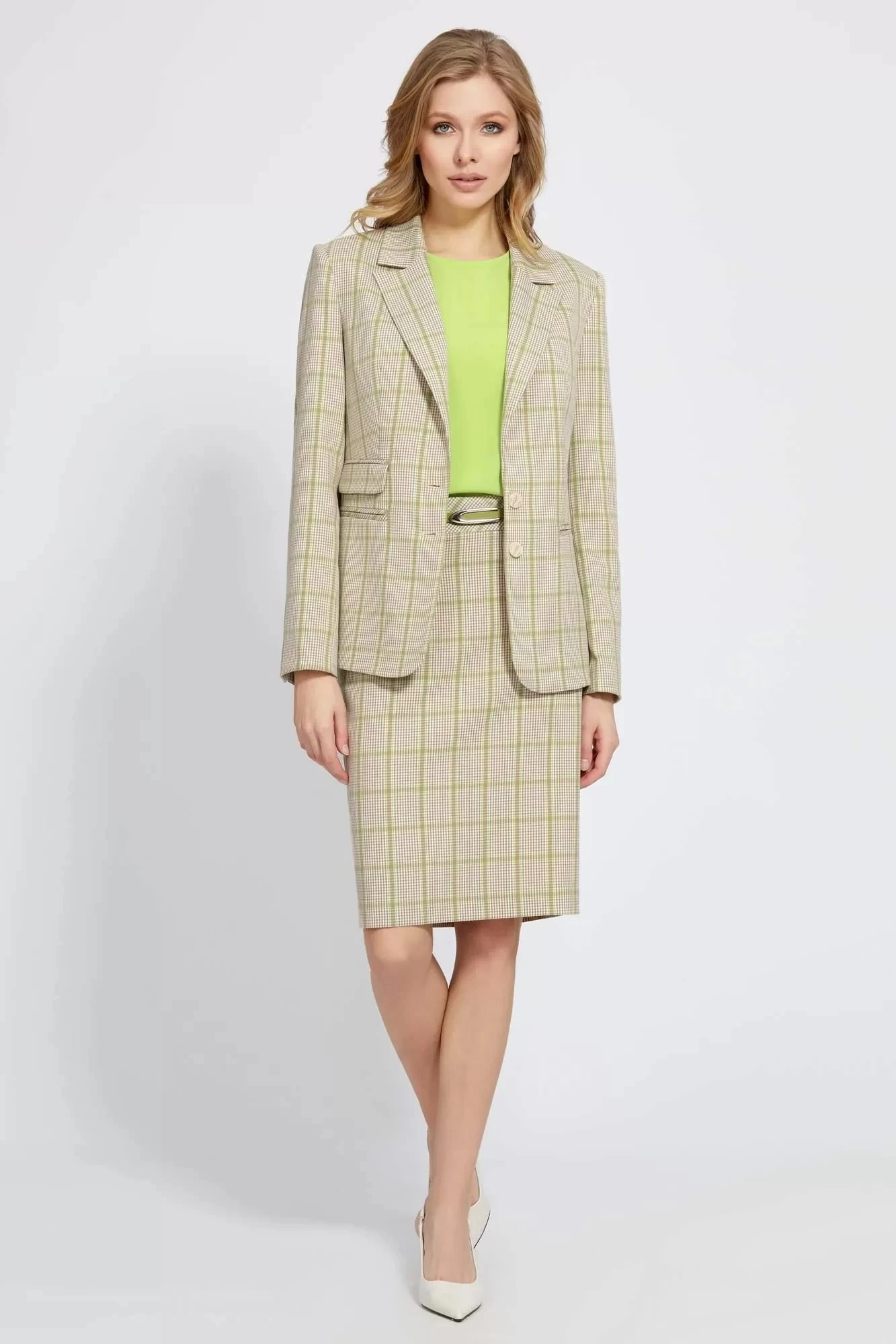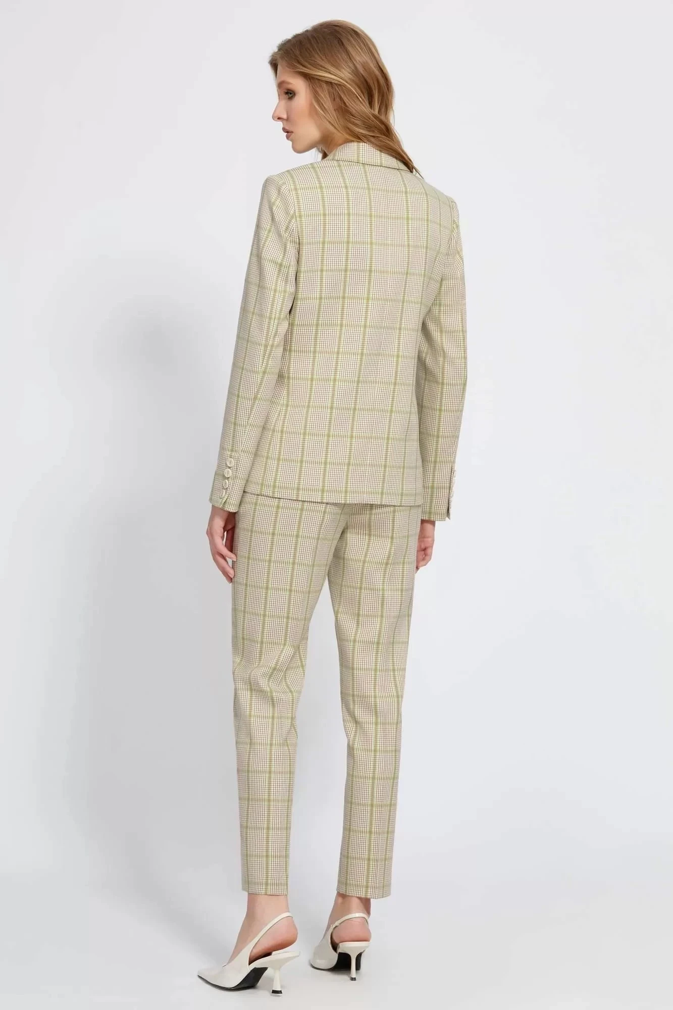Классический жакет полуприлегающего силуэта с отложным воротником и лацканами будет уместен и в гардеробе офиса и в повседневном образе. Перед с глубоким вырезом с застёжкой на две петли-пуговицы, двумя функциональными карманами с рамками и одним карманом-обманкой с клапаном. Рукава втачные двухшовные со шлицами и отделочными пуговицами. Модель сшили из мягкой приятной ткани с добавлением вискозы. Снизить градус формальности помогает дизайн – интересное сочетание яркой клетки трендового цвета с классической молочно-бежевой мелкой «гусиной лапкой». На подкладке.