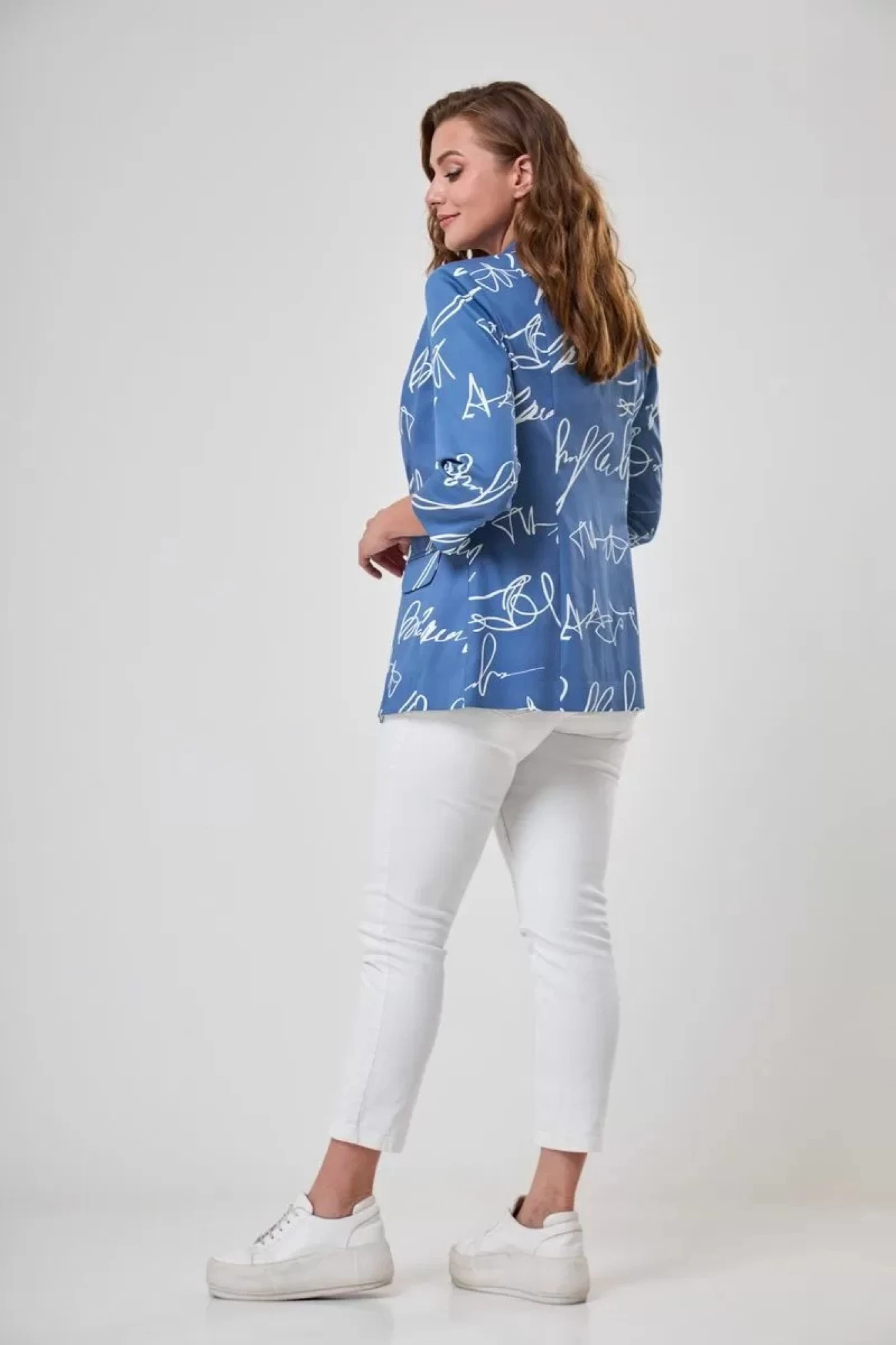 Хлопковый жакет (пиджак) с принтом БелЭльСтиль 203 голубой дизайн
