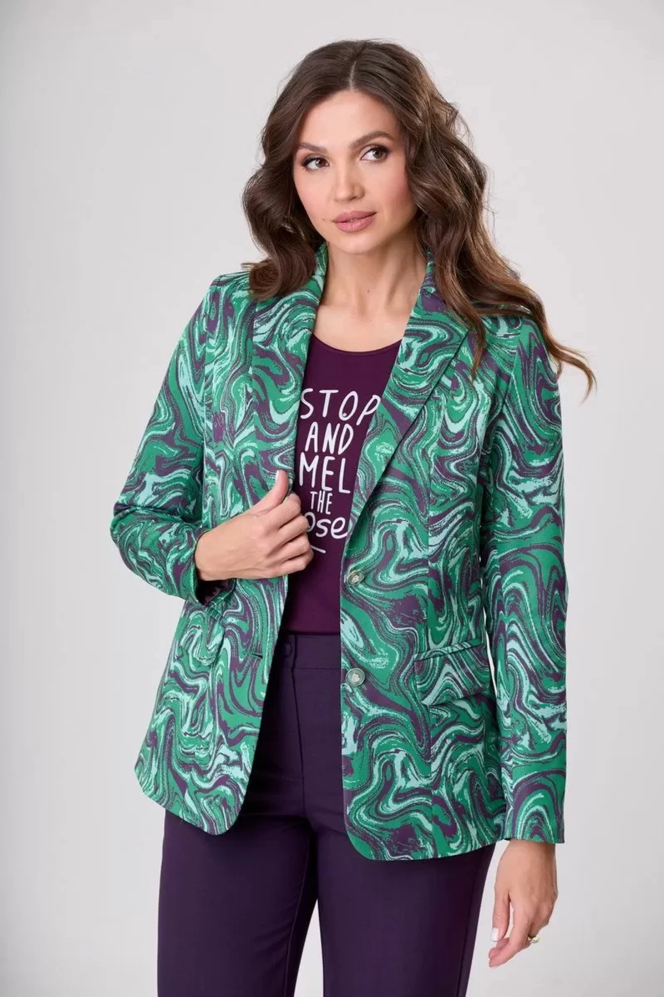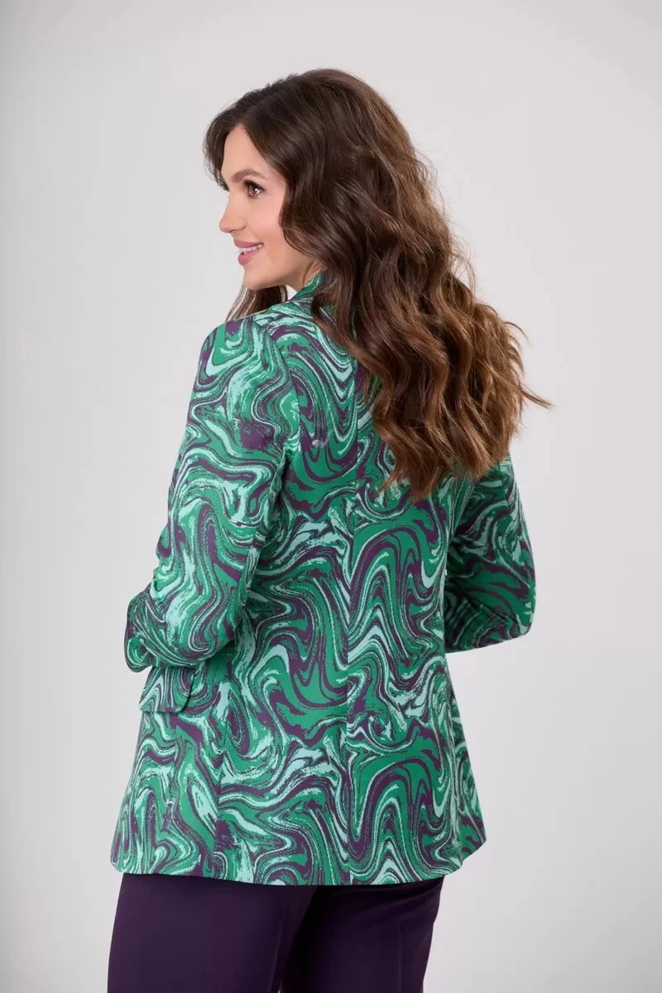 Хлопковый жакет (пиджак) с принтом БелЭльСтиль 203 зеленый+фуксия