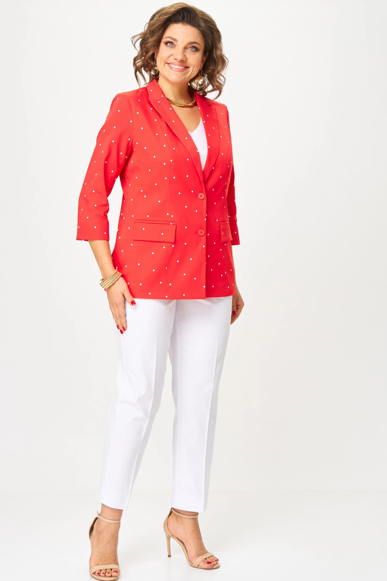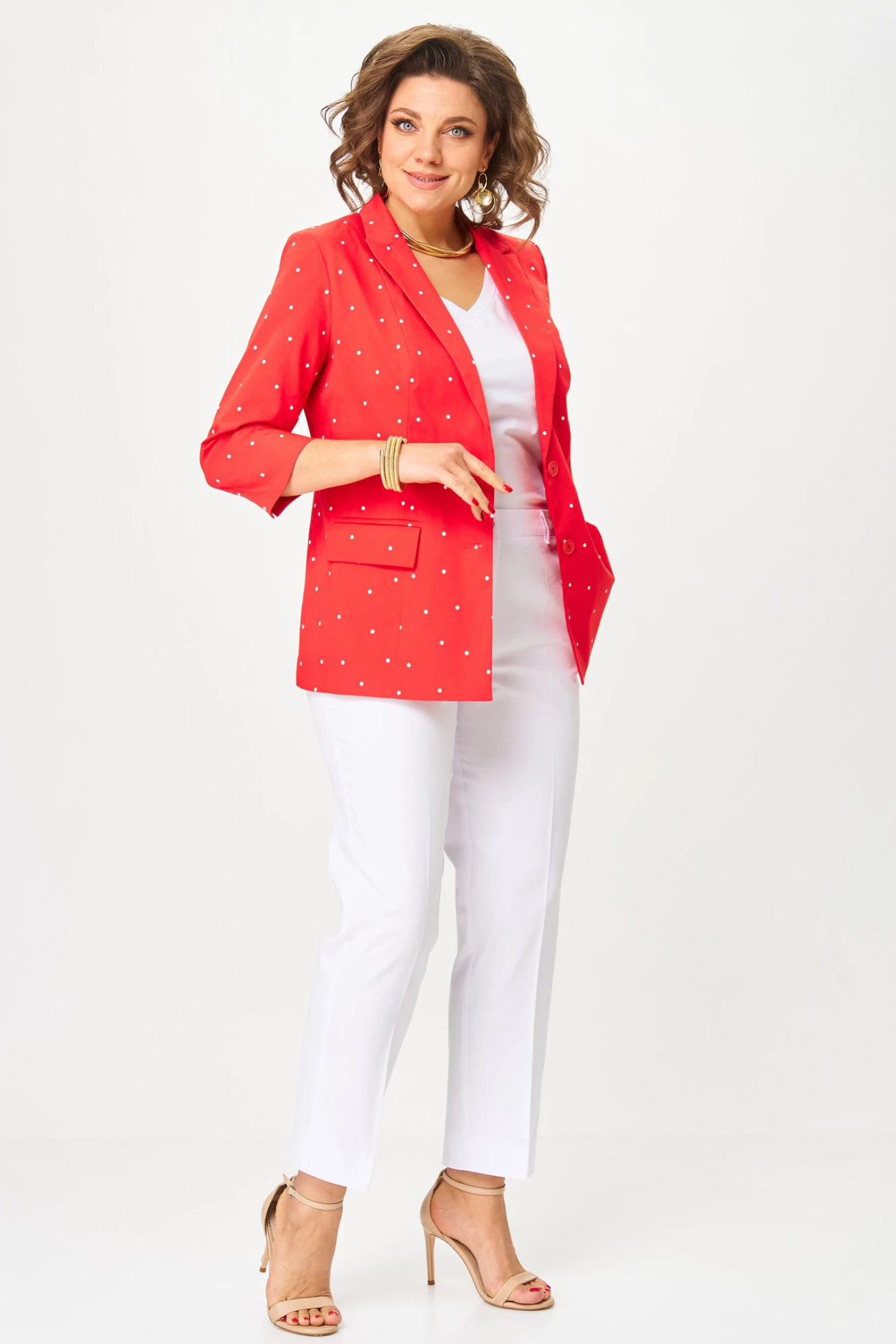 Жакет (пиджак) БелЭльСтиль 412 горох красный