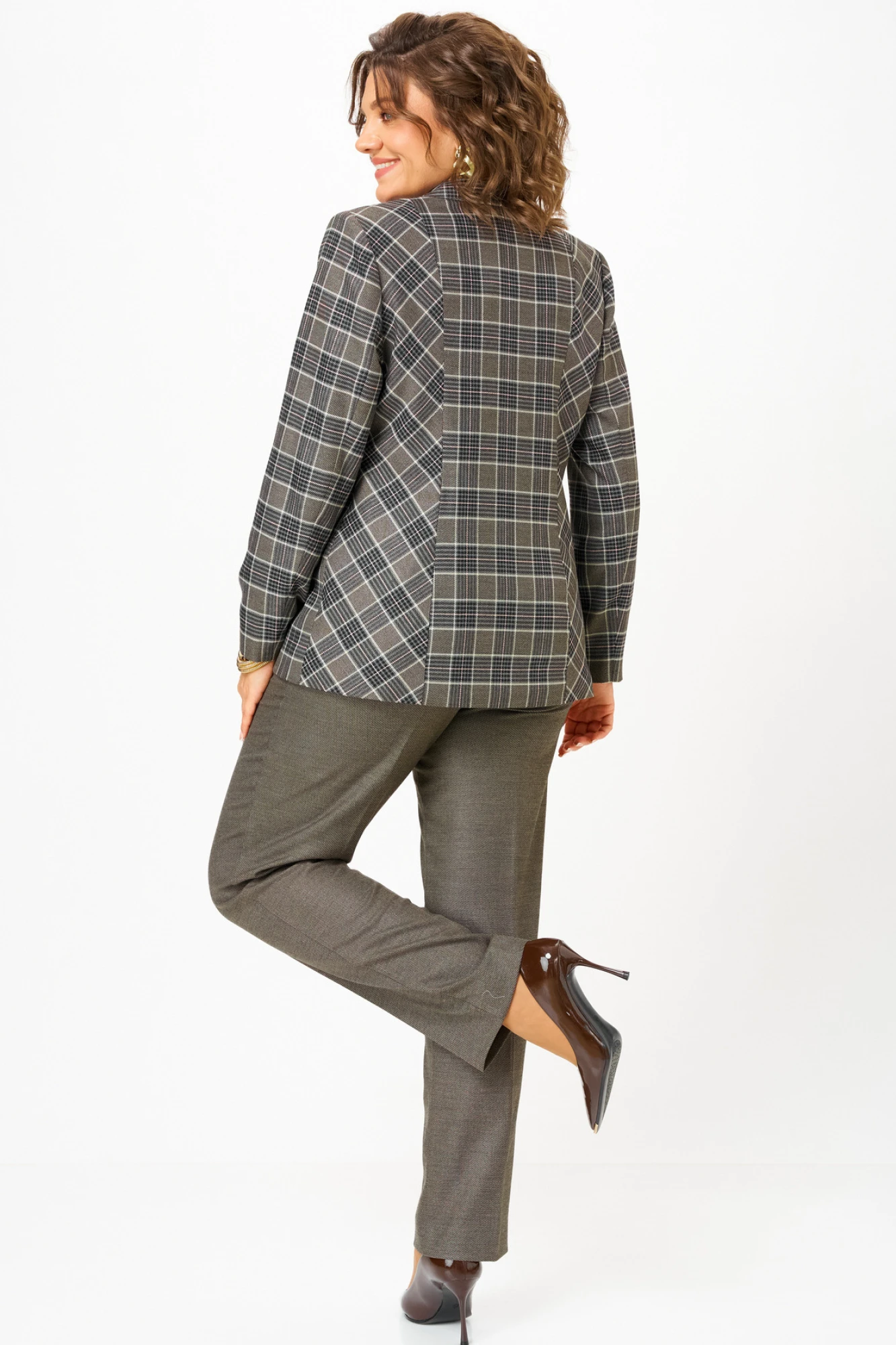 Жакет (пиджак) БелЭльСтиль 412 клетка коричневая