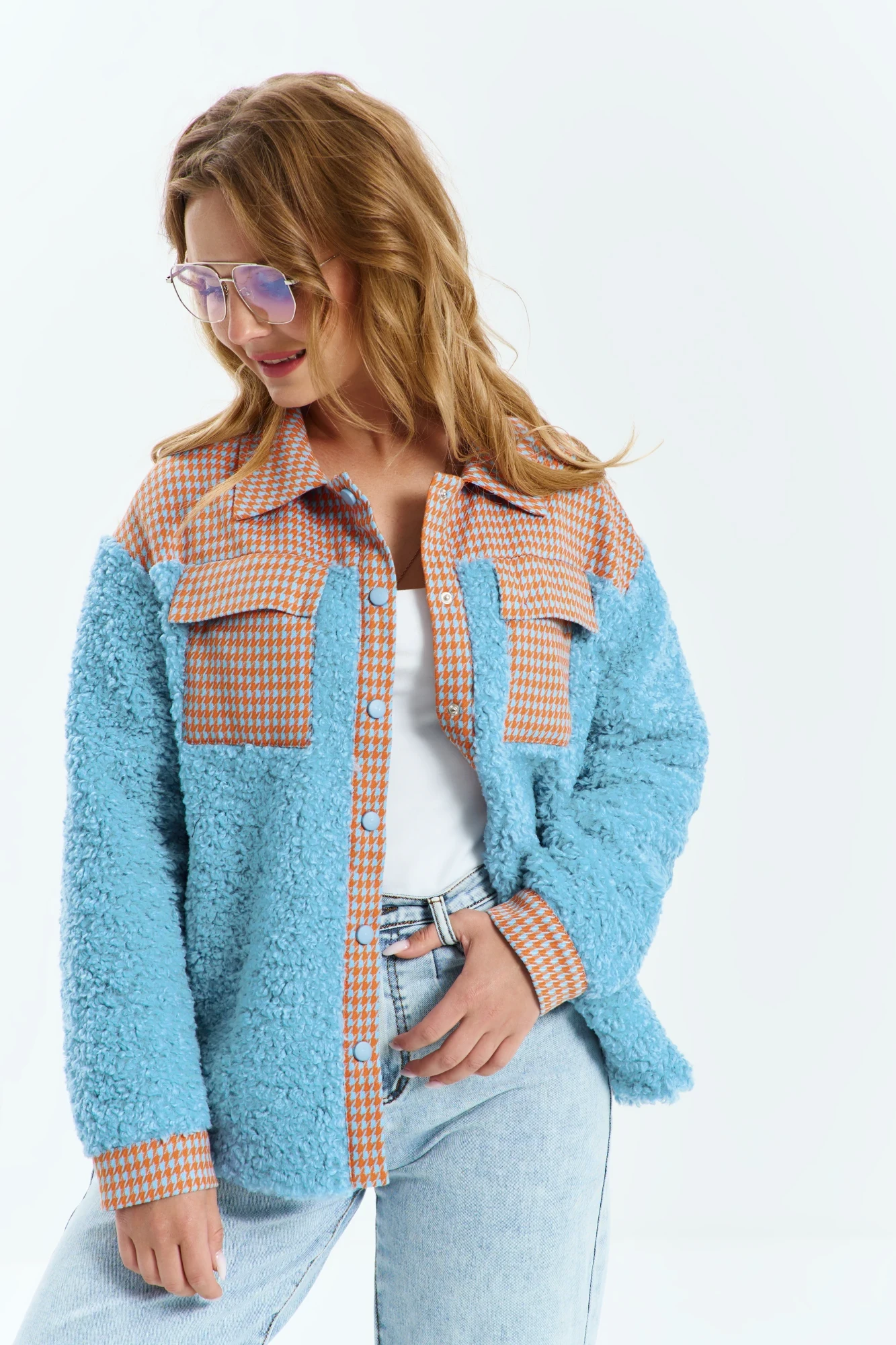 Комбинированный жакет (пиджак) Euromoda 536 голубой+оранжевый